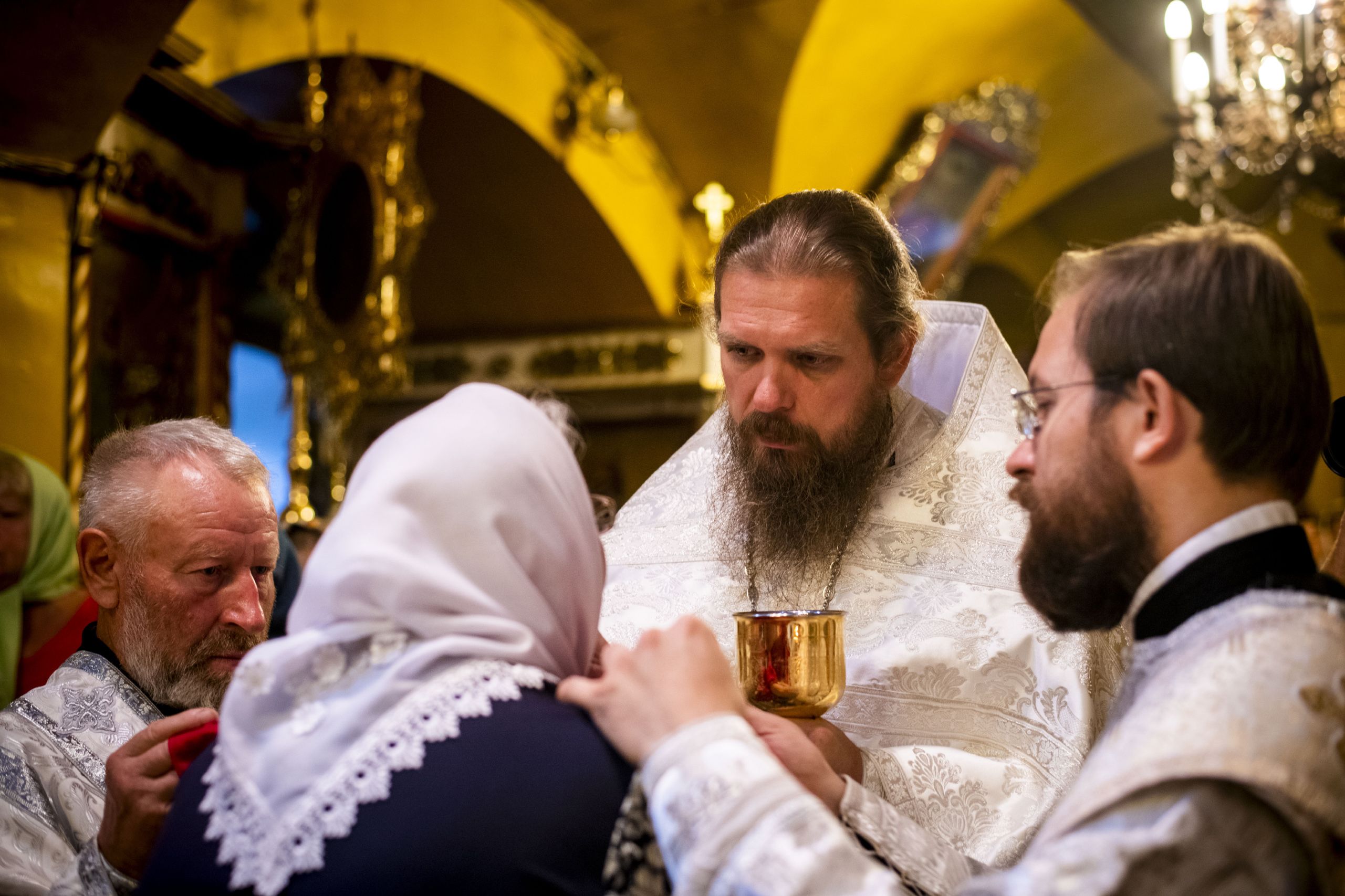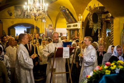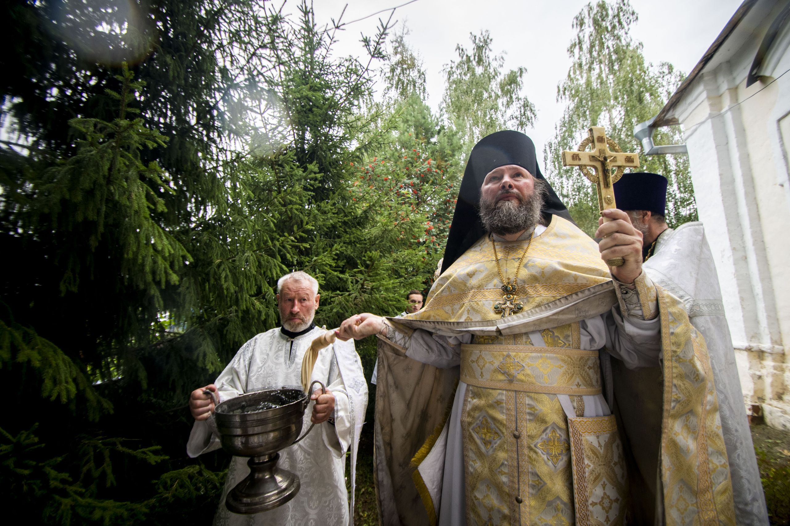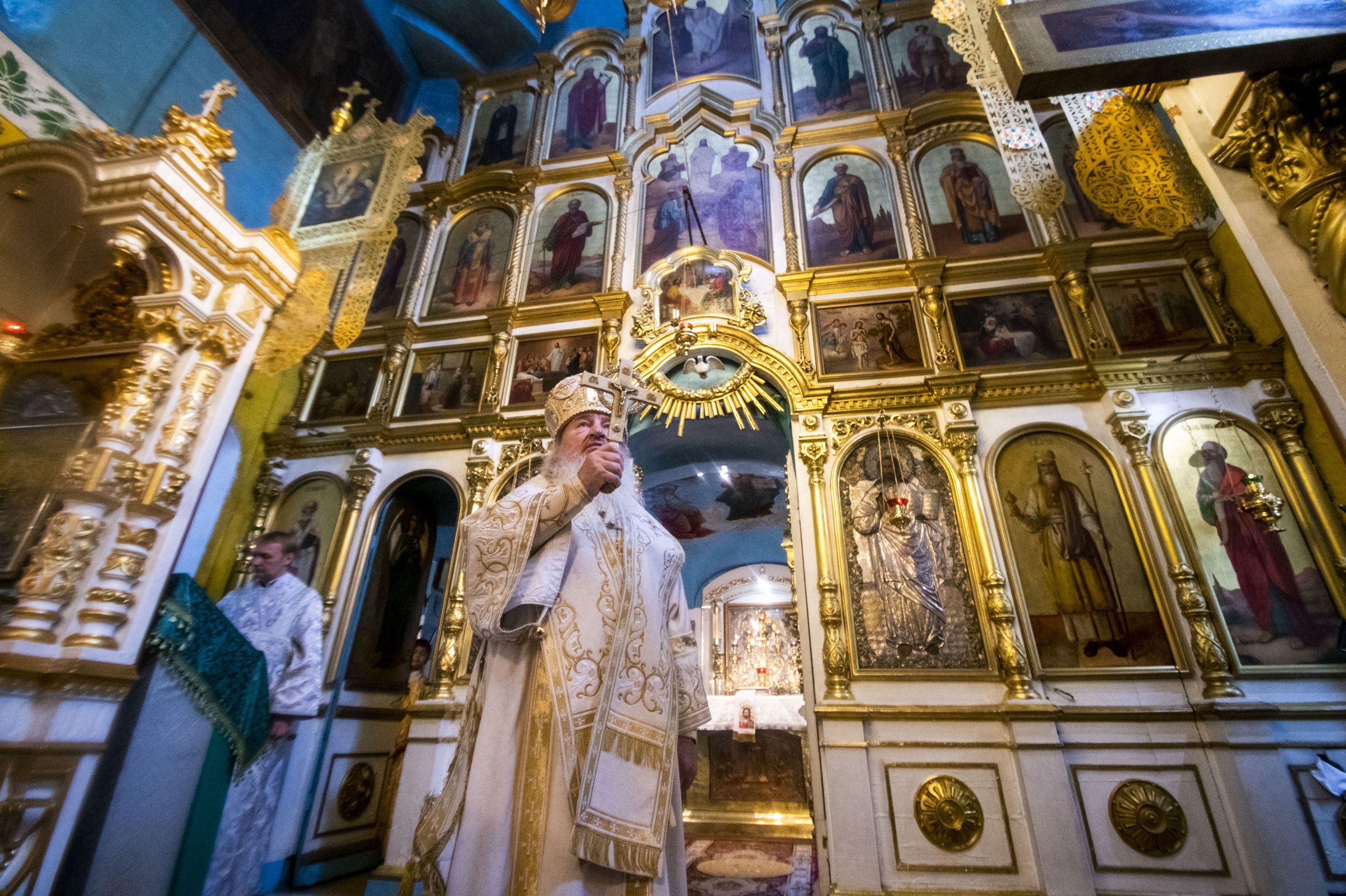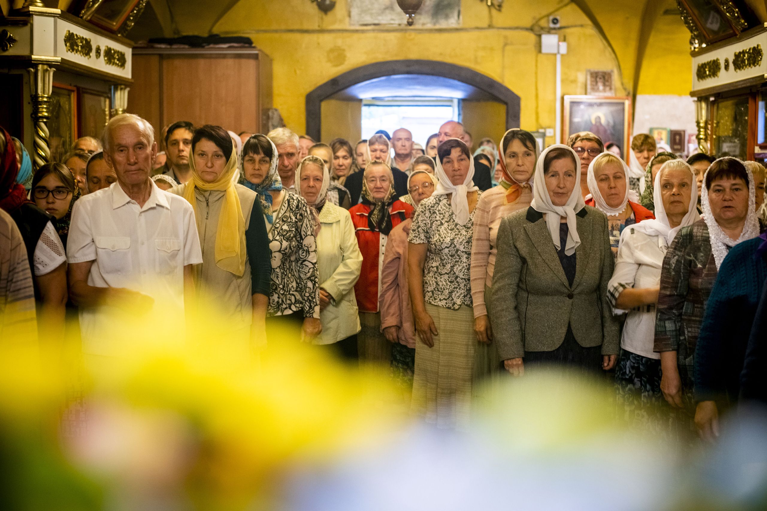 Во время прикладывания ко кресту священнослужители окропили святой водой плоды нового урожая, принесенные верующими в храм, и раздали маленькие иконы с Казанским образом Пресвятой Богородицы.