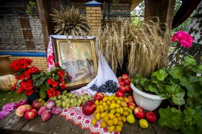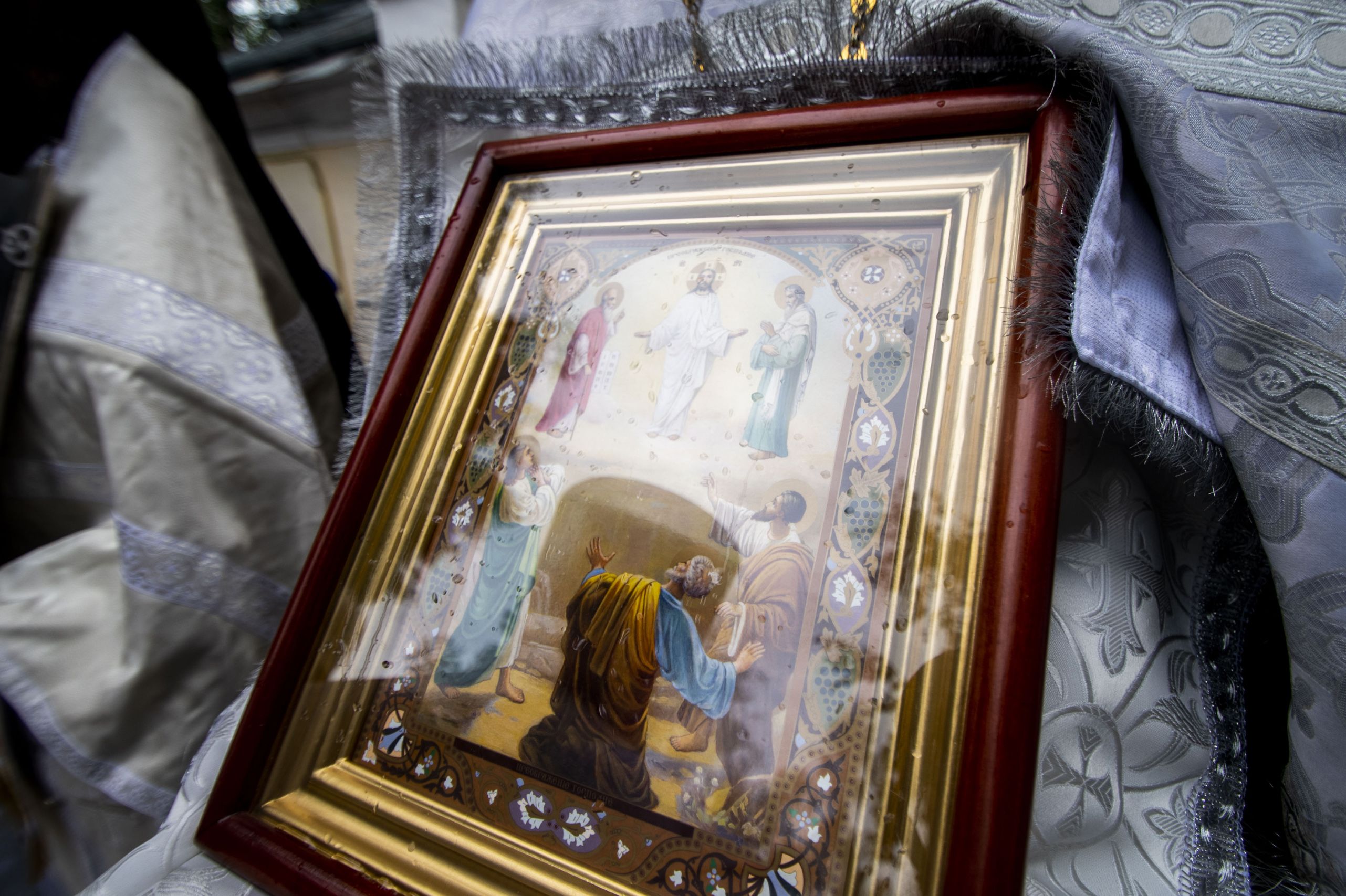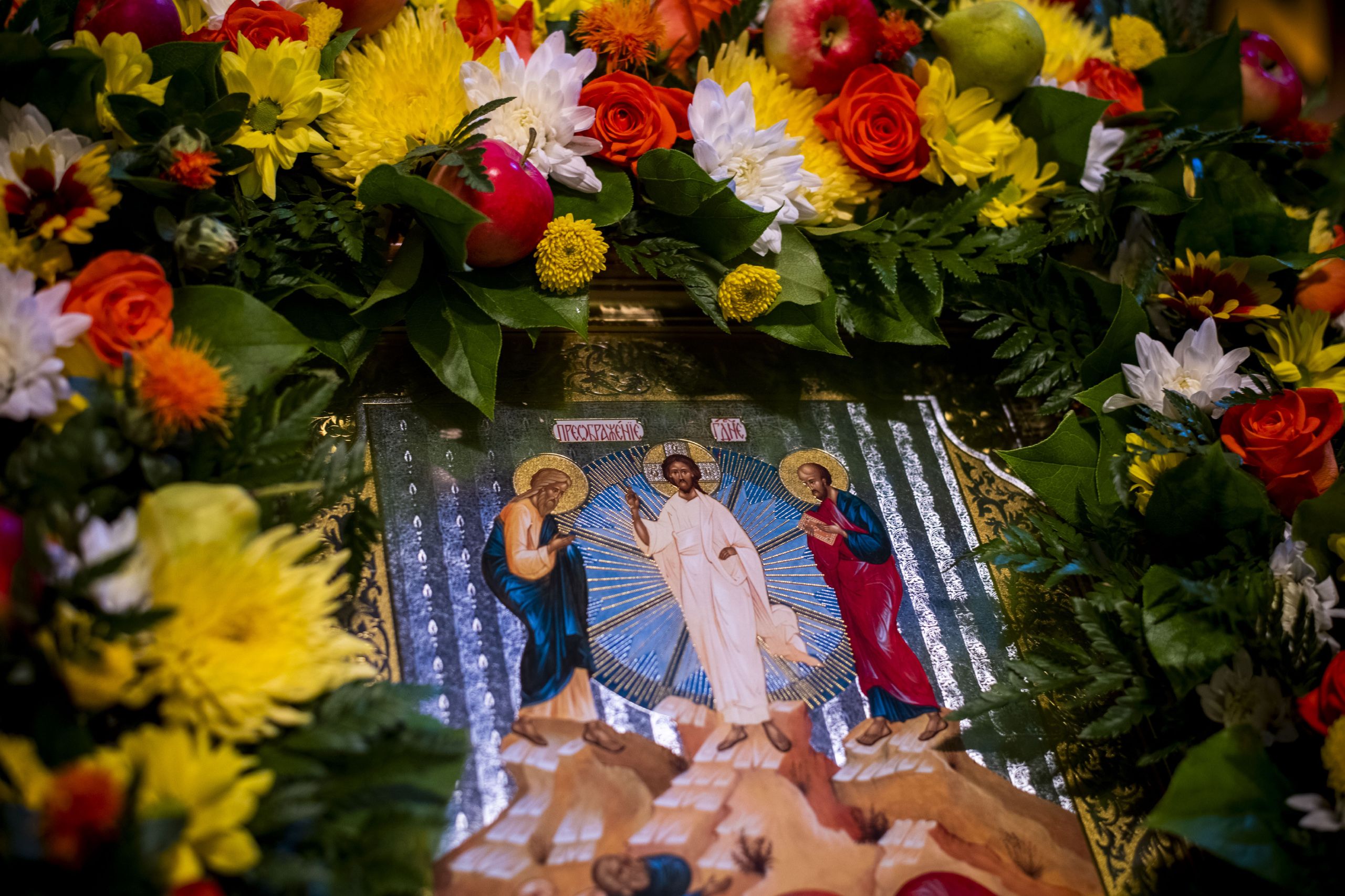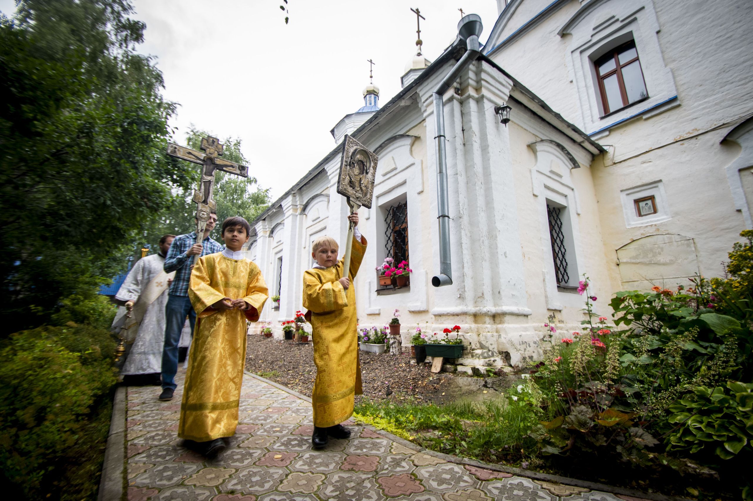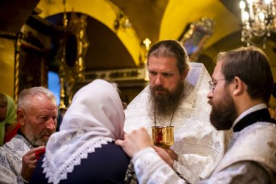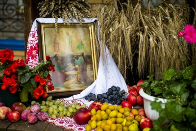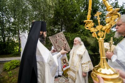 Во время прикладывания ко кресту священнослужители окропили святой водой плоды нового урожая, принесенные верующими в храм, и раздали маленькие иконы с Казанским образом Пресвятой Богородицы.