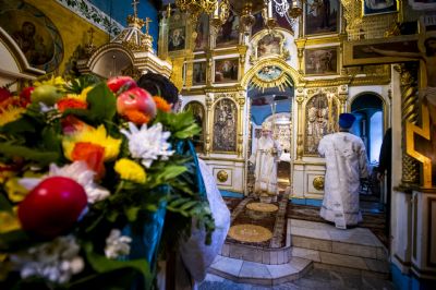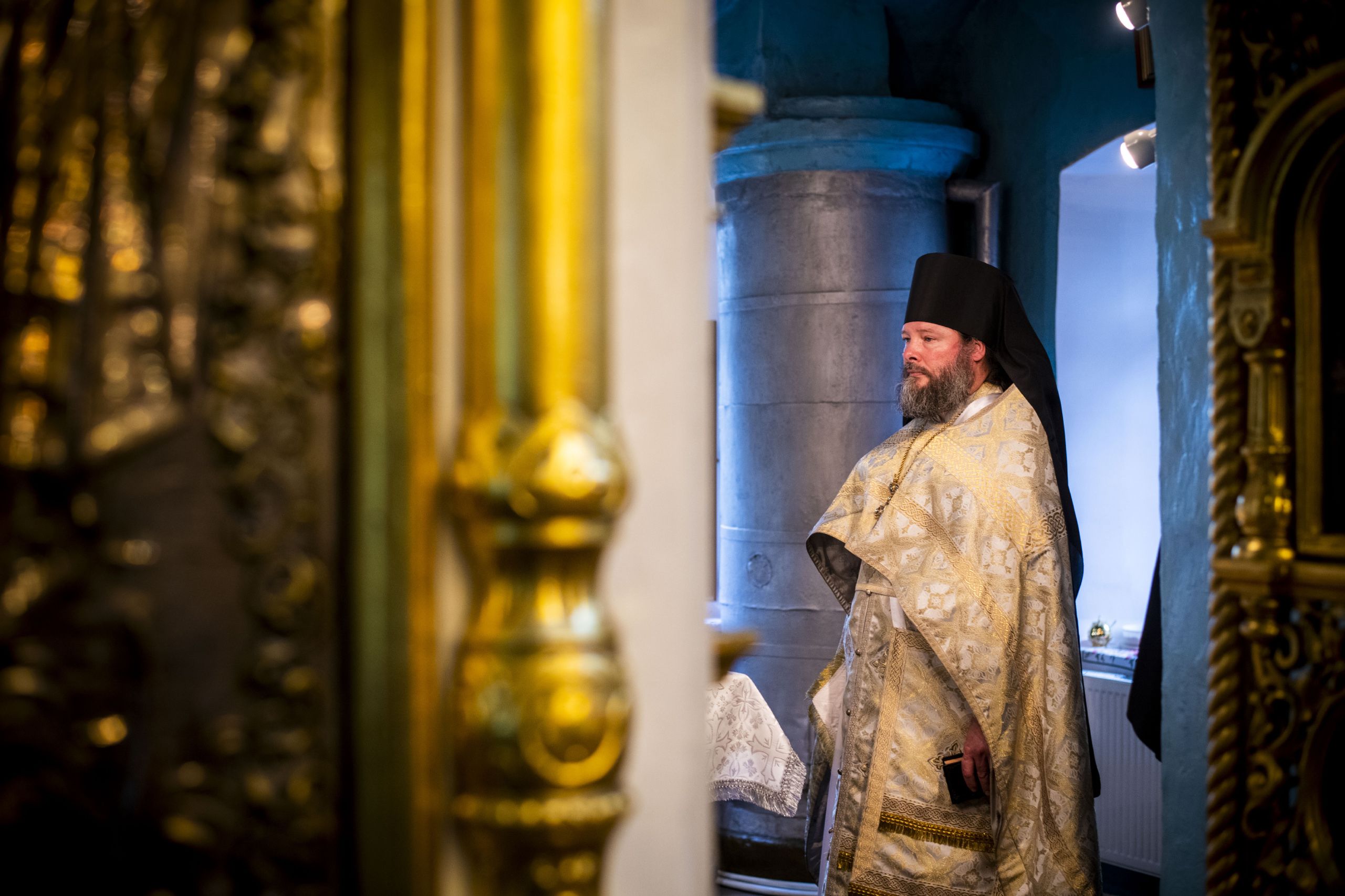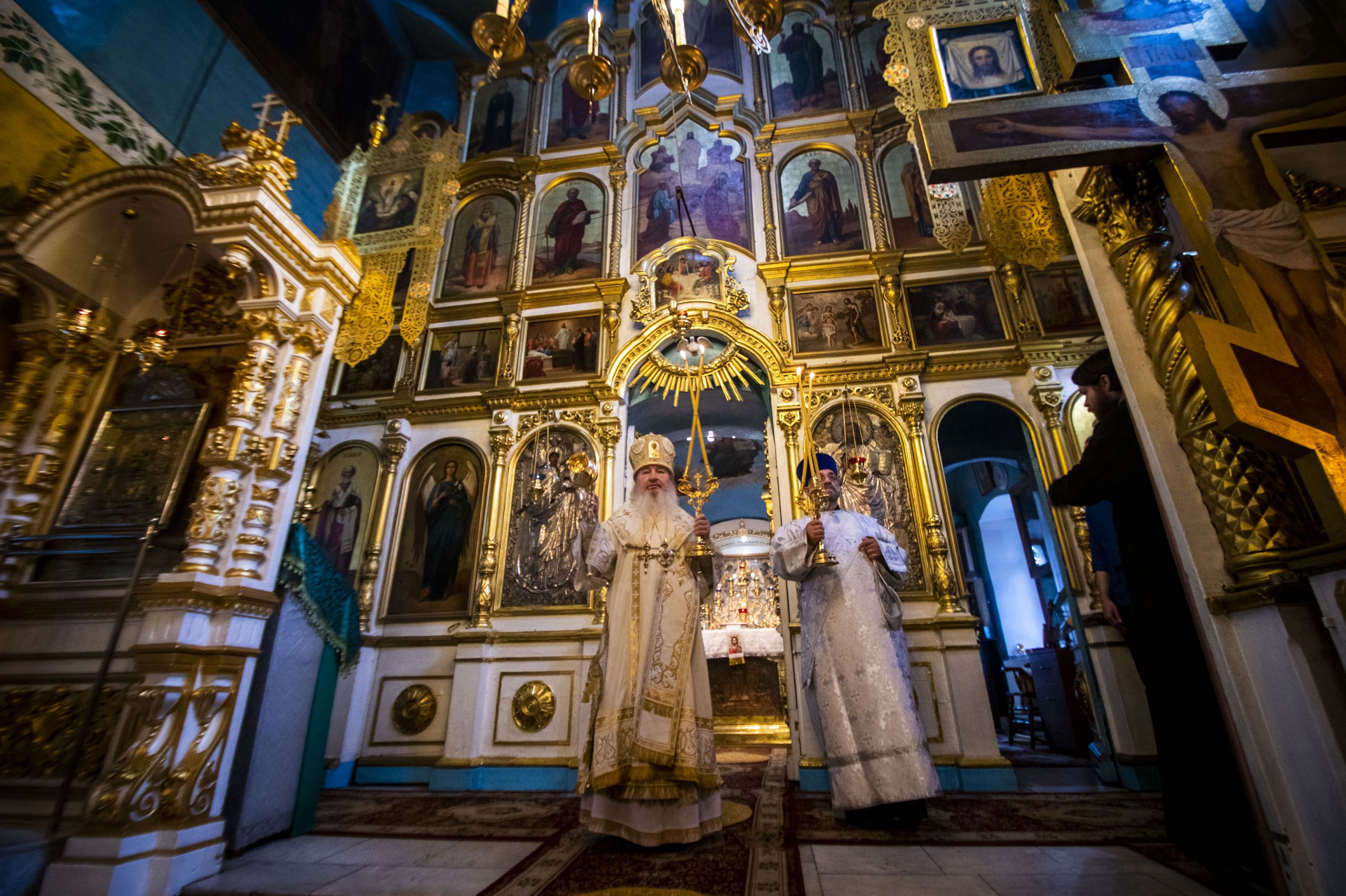 Богослужебные песнопения исполнялись архиерейским мужским хором под управлением Дениса Рогова.