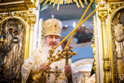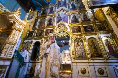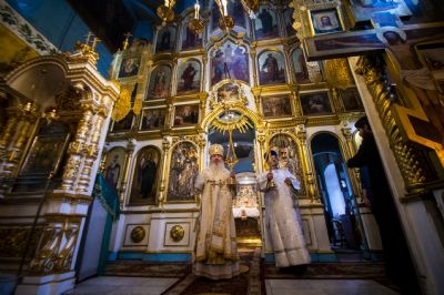 Накануне правящий архиерей совершил всенощное бдение в Казанско-Богородицком мужском монастыре.