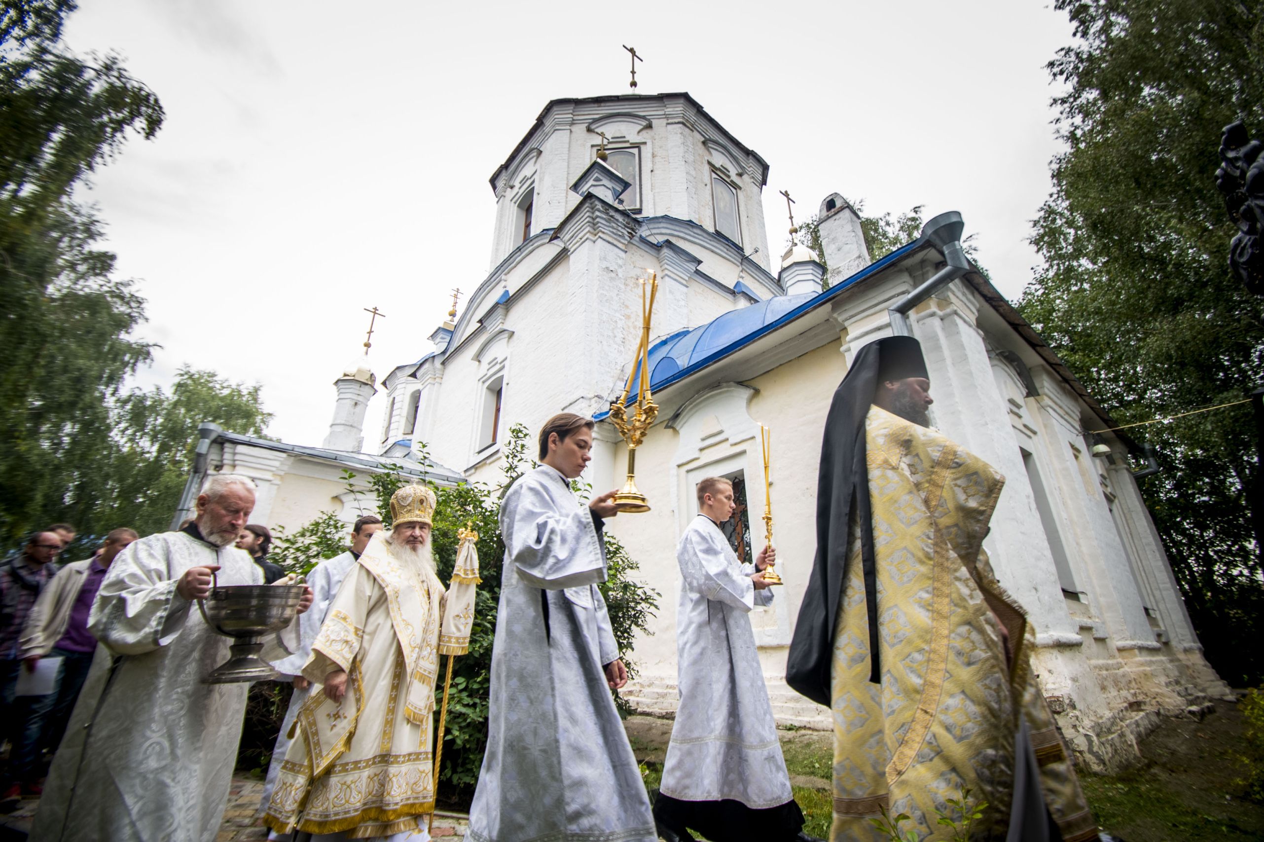 За Литургией главе Татарстанской митрополии сослужили настоятель Преображенского храма игумен Александр (Зинин), секретарь Казанского епархиального управления протоиерей Владимир Самойленко, настоятель Введенского Кизического мужского монастыря города Казани игумен Пимен (Ивентьев), благочинный I Казанского округа протоиерей Алексий Чубаков.