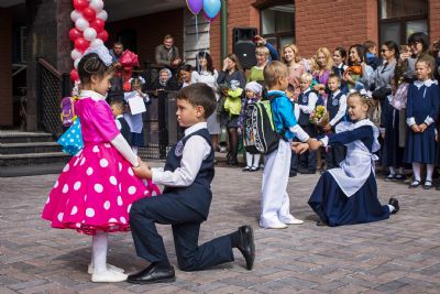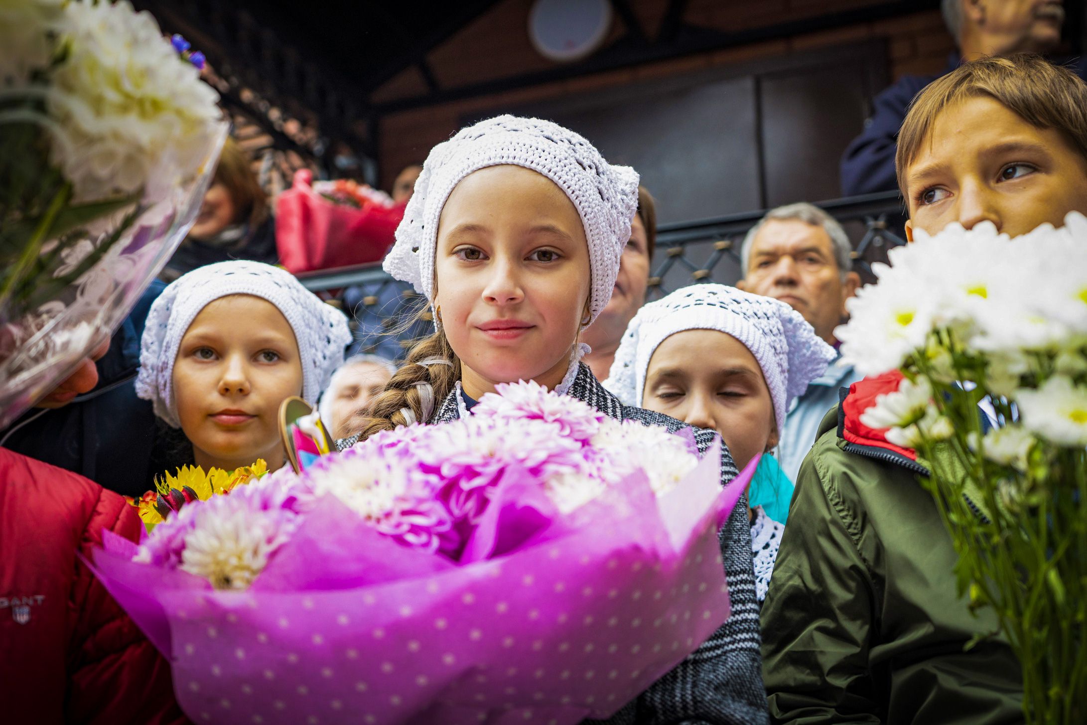 Завершилась праздничная линейка традиционным первым звонком, который пригласил детей в классы.