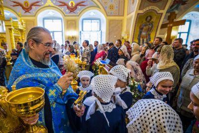 За Литургией были вознесены сугубые прошения об учащих и учащихся, об усердии и успехах в учебе. Все воспитанники и преподаватели причастились Святых Христовых Таин, после чего настоятель окропил присутствующих святой водой и обратился к ним с напутственным словом.