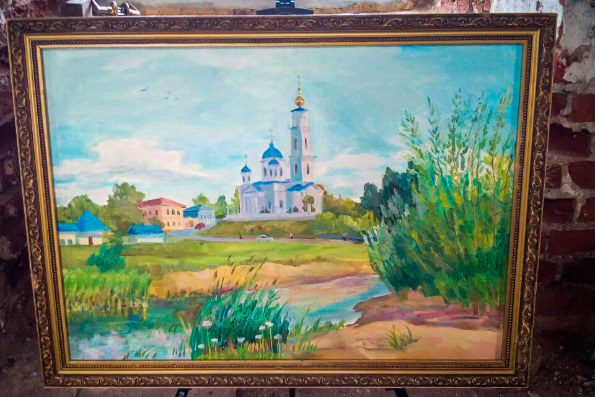 На всех картинах живописца изображены храмы. На протяжении дня экспозицию посещали дачники, а вечером на выставку пришли более ста детей, отдыхающих в оздоровительном комплексе «Раздолье».