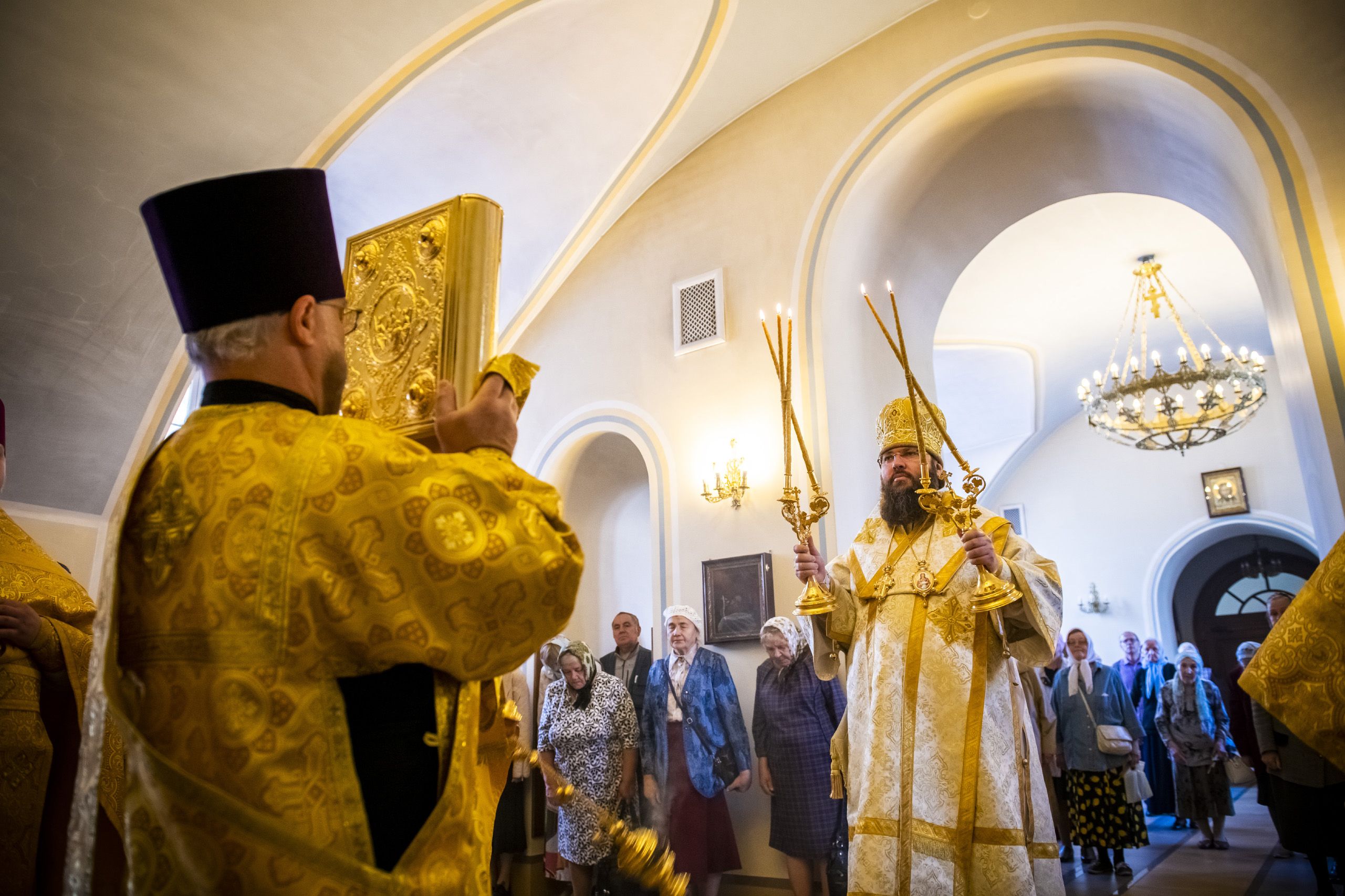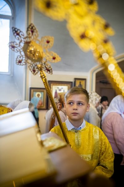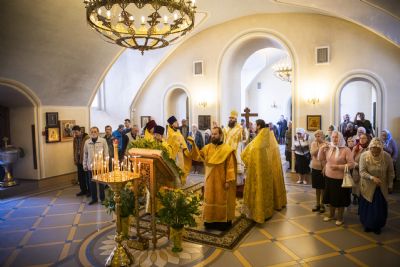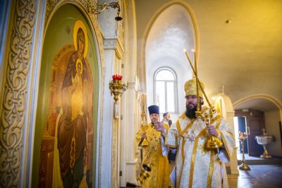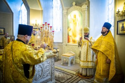 В конце Литургии духовенство совершило славление святому покровителю храма. Епископ Иннокентий поздравил клириков и прихожан с престольным праздником и обратился с архипастырским словом: