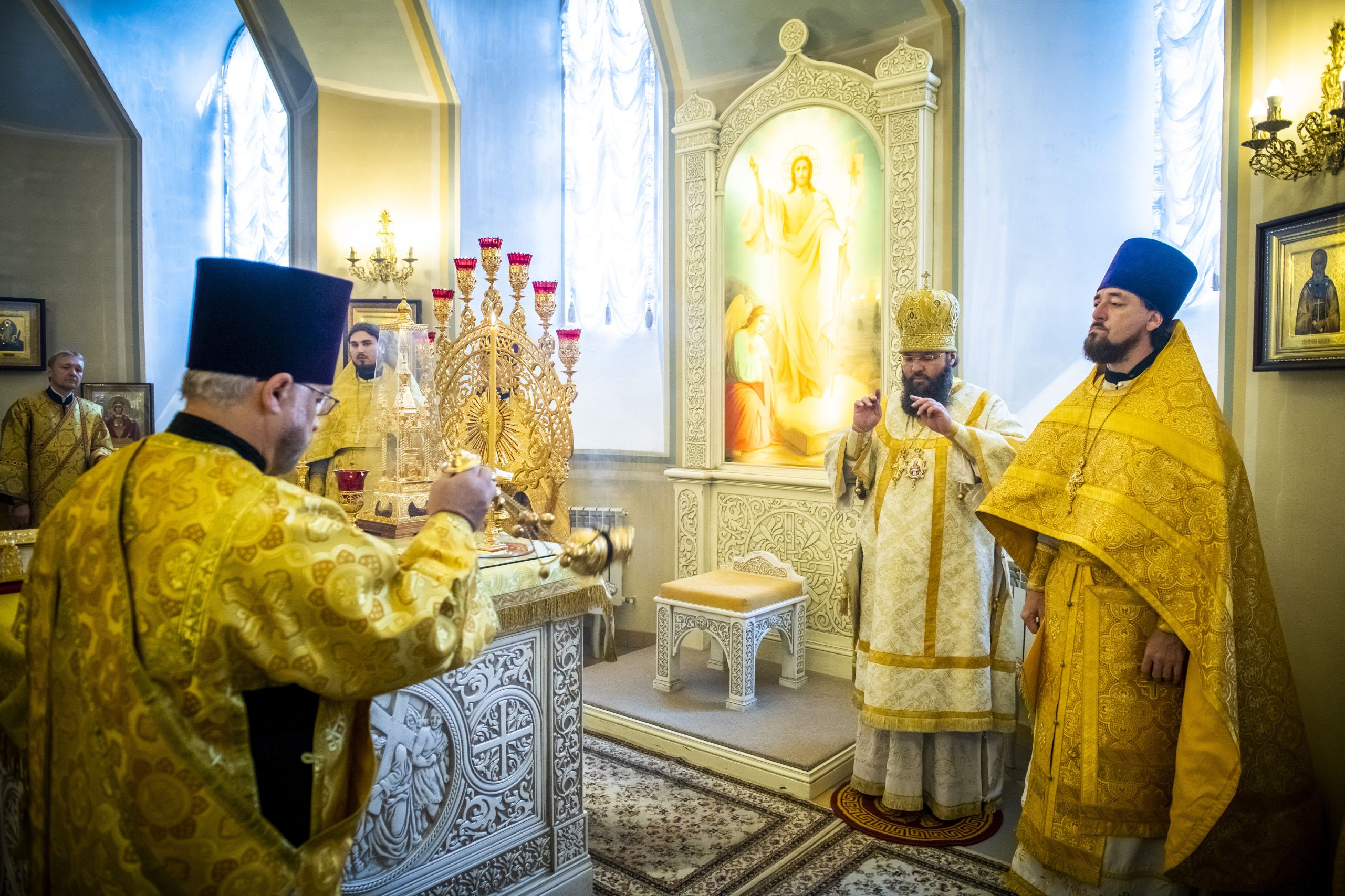 Викарию Казанской епархии сослужили настоятель храма, благочинный IV градского округа протоиерей Владимир Пономарев и клирики прихода.