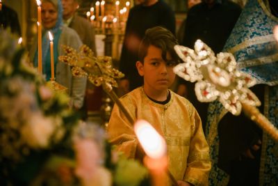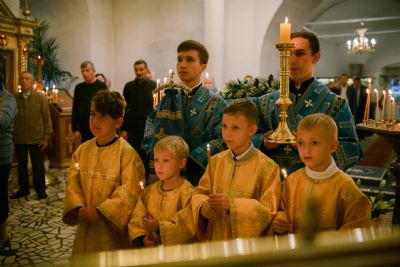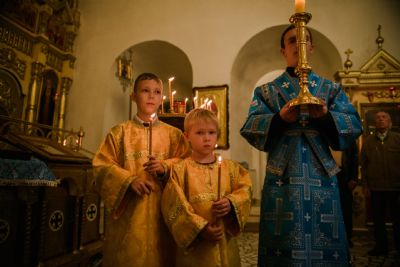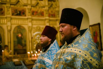 Песнопения вечернего богослужения исполнялись смешанным хором храма под управлением Лилии Сулимовой.