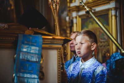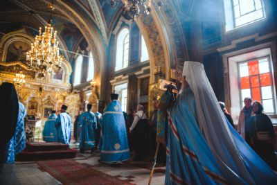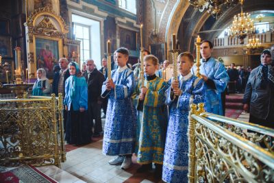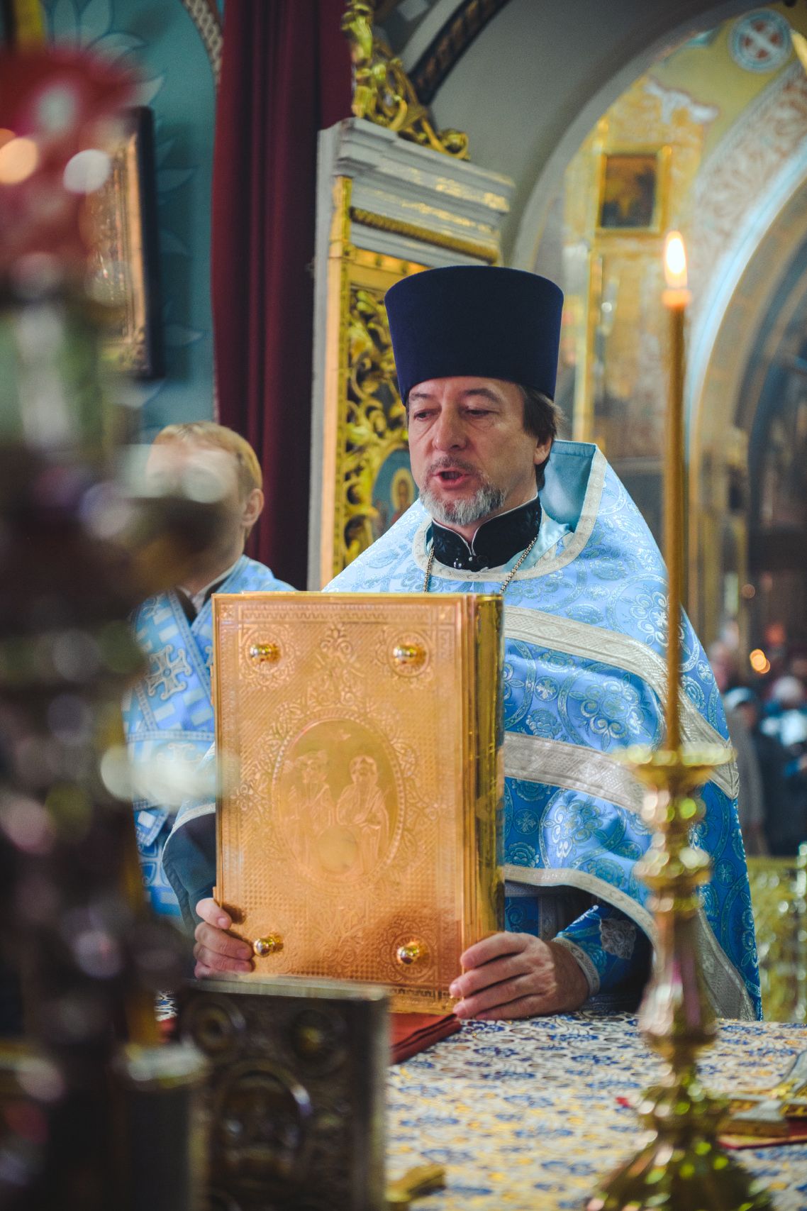 По заамвонной молитве на середине храма духовенство пропело тропарь, кондак и величание праздника Рождества Пресвятой Богородицы.