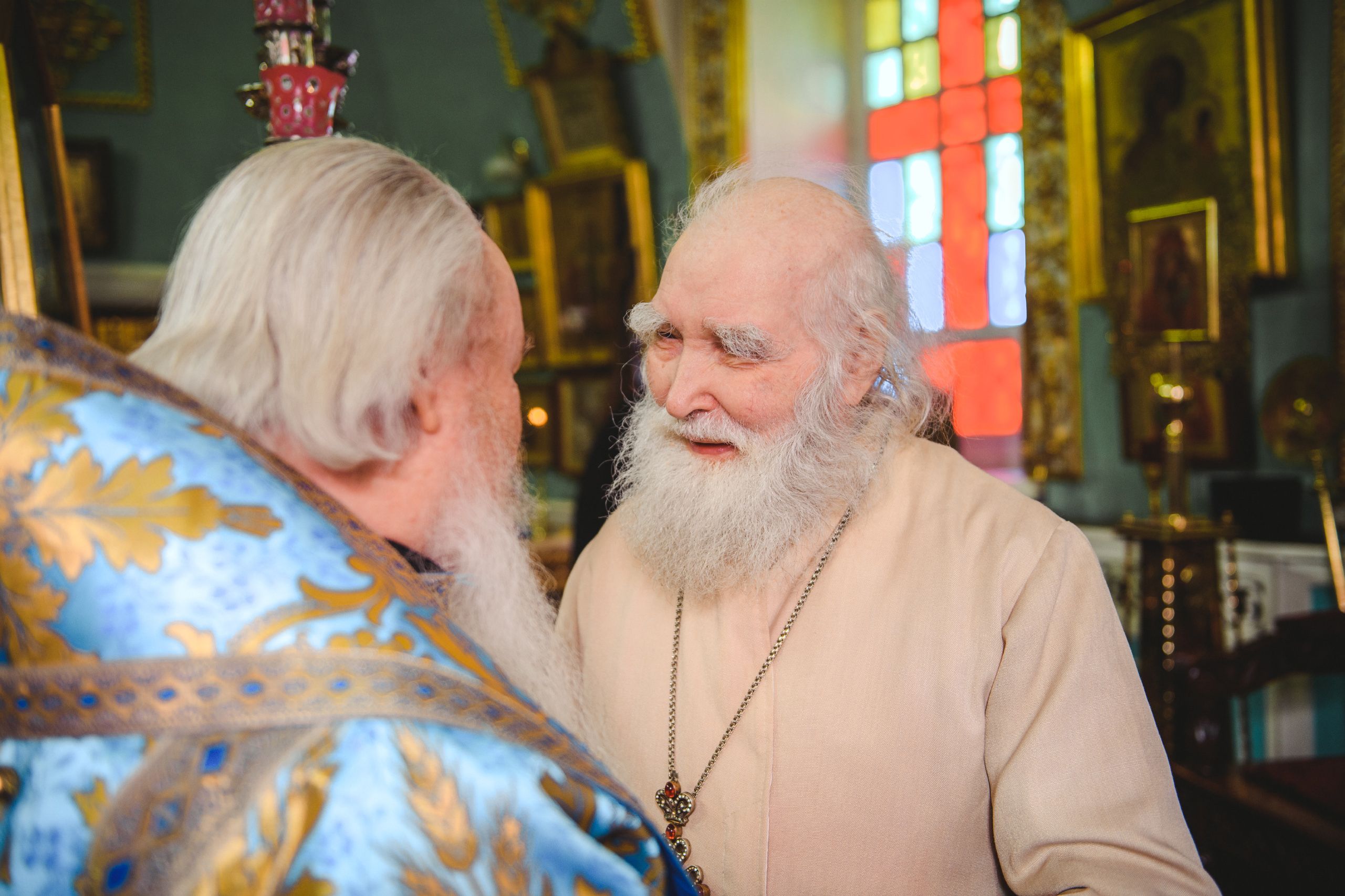 Главе Татарстанской митрополии сослужили настоятель собора протоиерей Иоанн Барсуков и настоятель Введенского Кизического мужского монастыря города Казани игумен Пимен (Ивентьев).