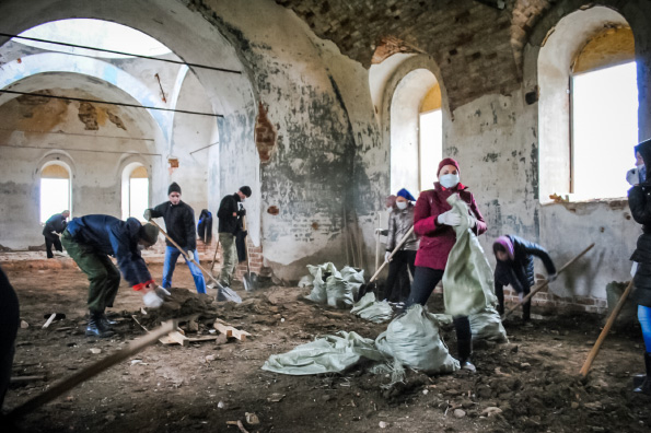 22 сентября команда трудников под руководством духовника проекта «Экспедиция» иерея Анатолия Григорьева и руководителя епархиального молодежного отдела Артема Гаранина очистила храм и прилегающую к нему территорию от мусора и расчистила фундамент. После этого ребята с помощью местных жителей закрыли оконные и дверные проемы и отверстия в кровле здания, чтобы предотвратить его дальнейшее разрушение.