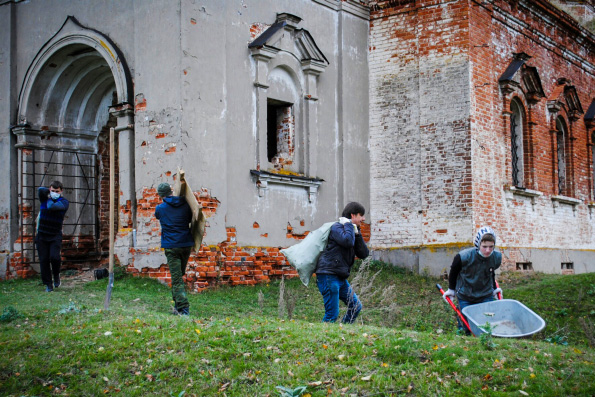 После окончания работ ребят ждали приготовленный на костре обед и прогулки по липовым аллеям у барского пруда. Кроме того, молодежь приняла участие в съемках документального фильма, посвященного сельскому храму.