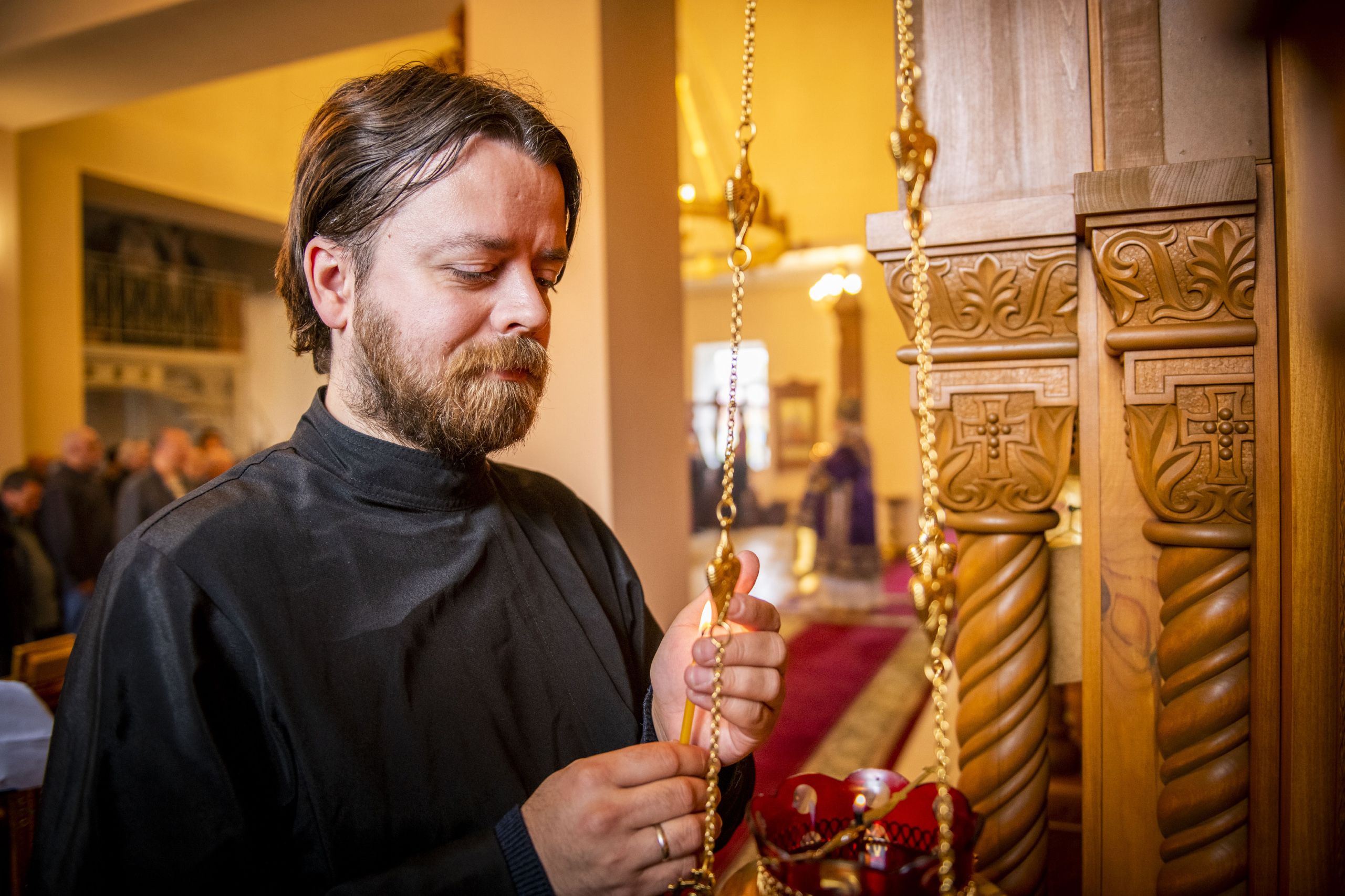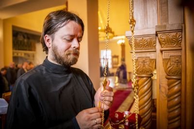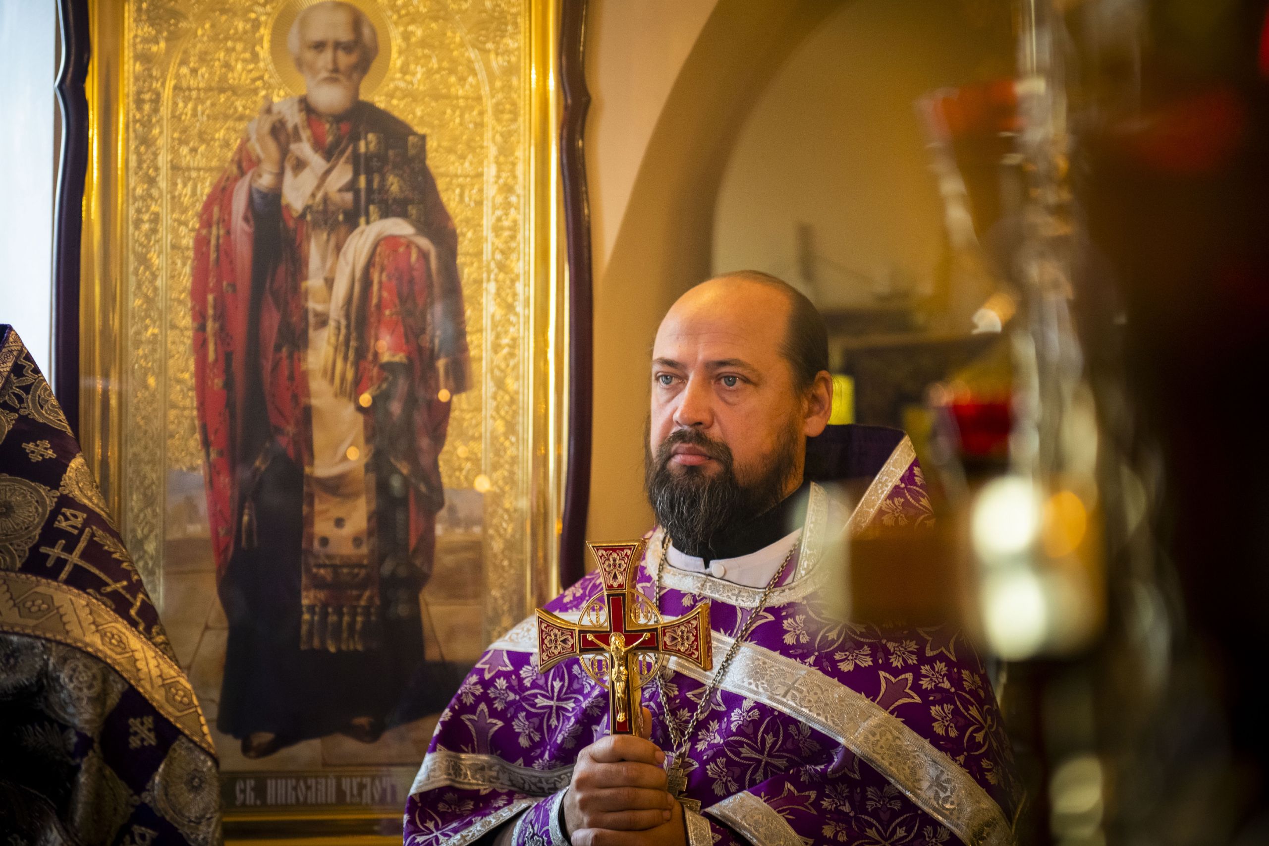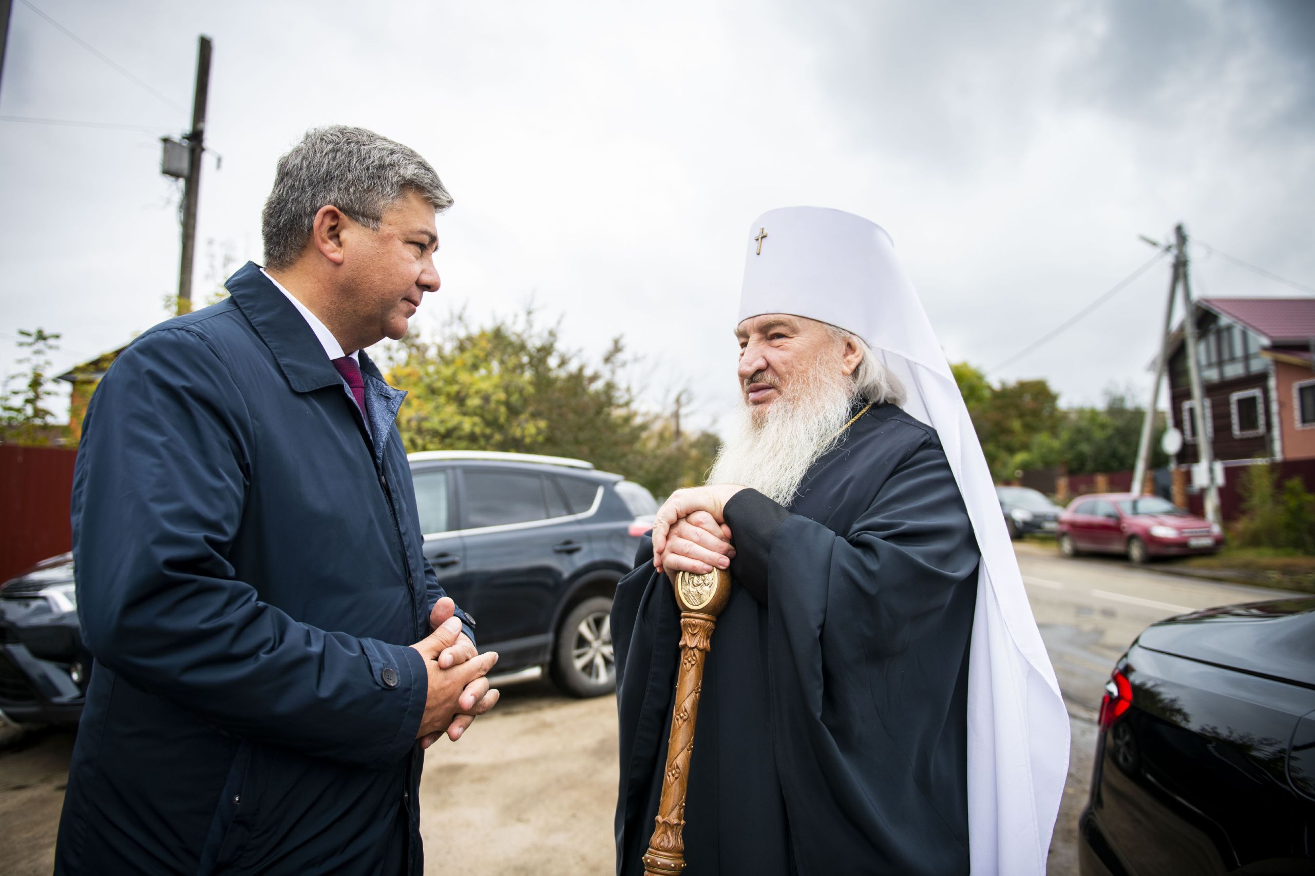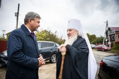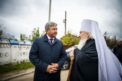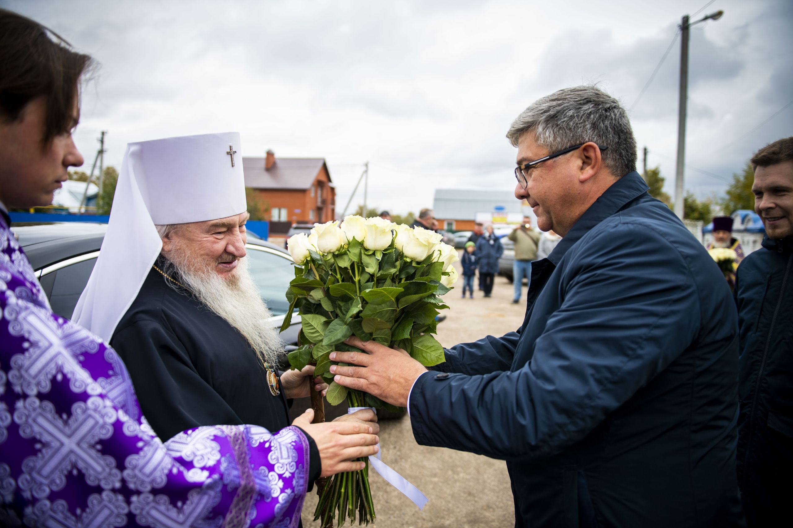 Перед началом богослужения правящего архиерея приветствовал и.о. руководителя исполкома Зеленодольского района Михаил Афанасьев. В свою очередь, владыка Феофан поздравил Михаила Павловича с назначением на должность и обсудил перспективы сотрудничества власти и Церкви в районе.