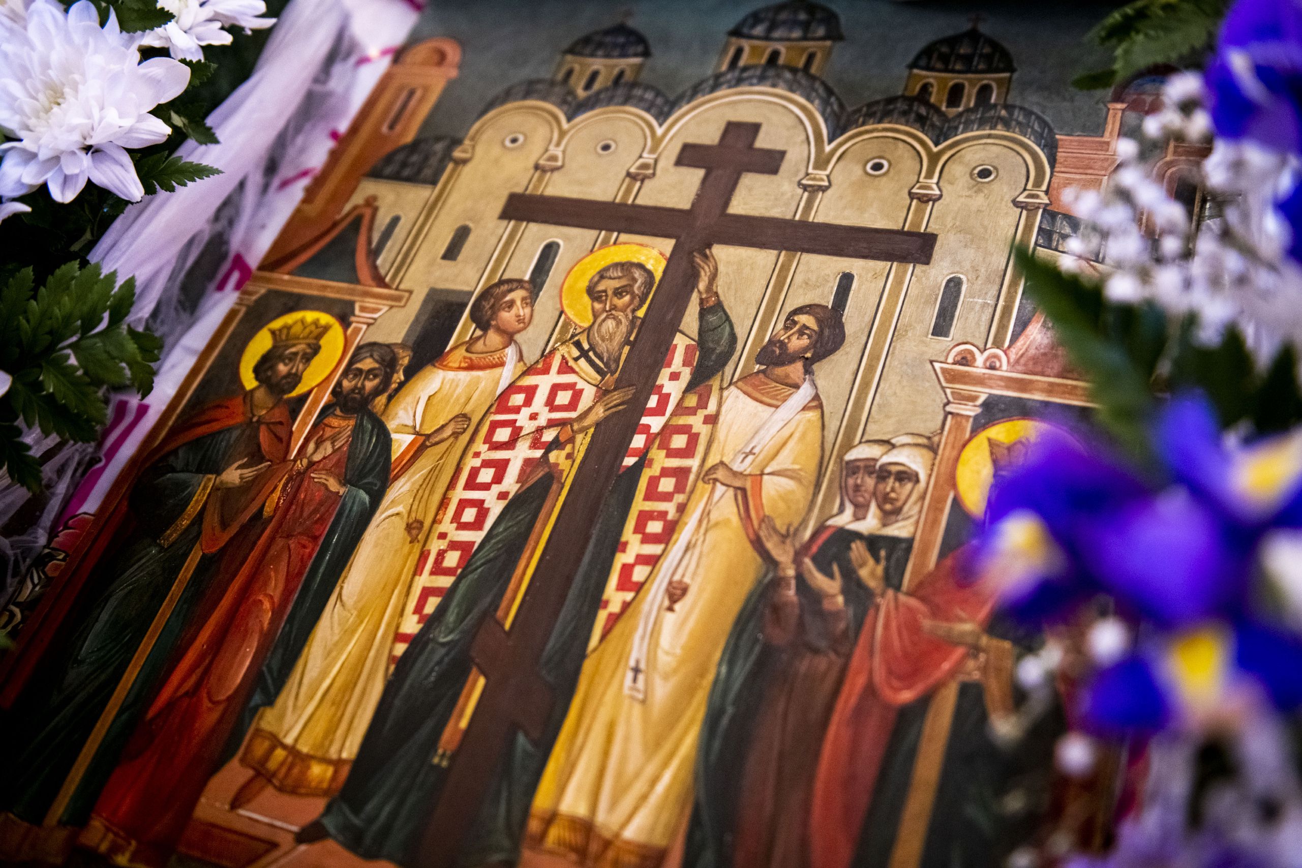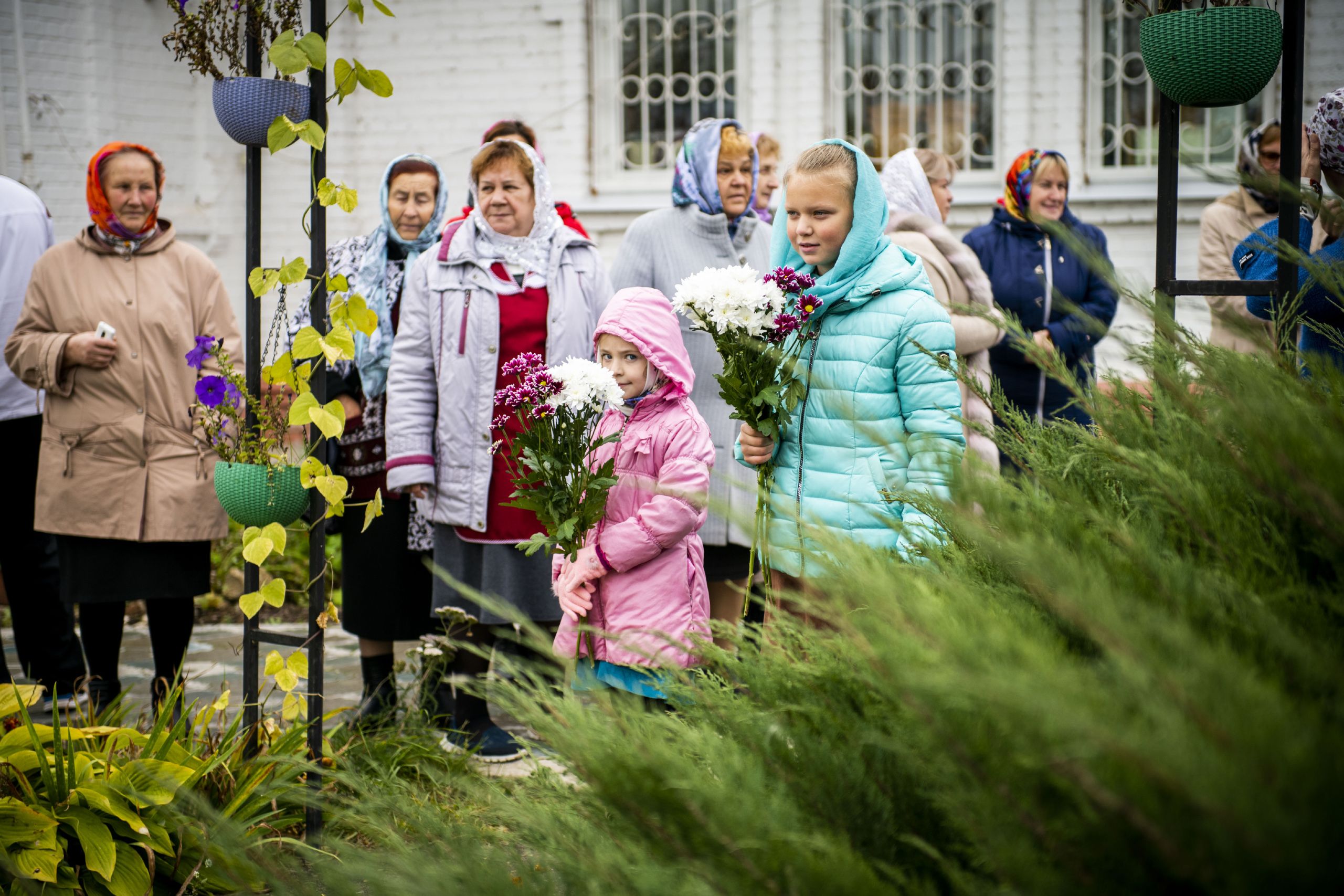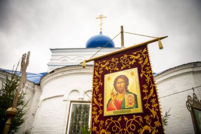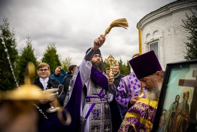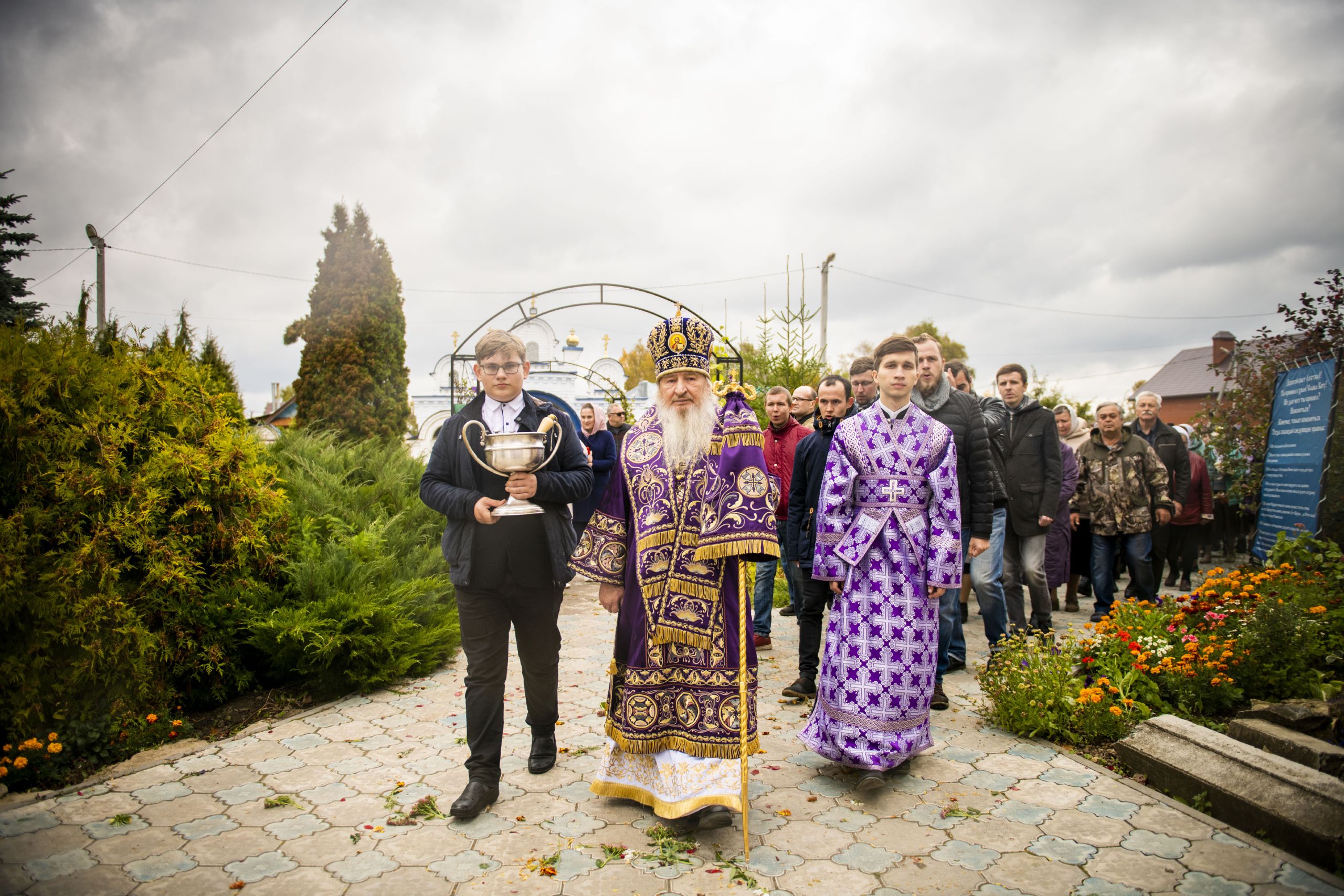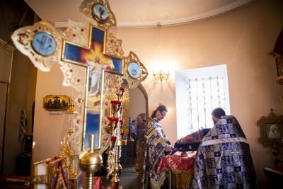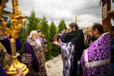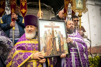 По окончании Литургии состоялся крестный ход вокруг храма. Духовенство и молящиеся совершили поклонение Животворящему Кресту Господню.