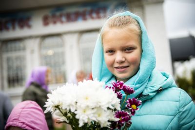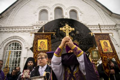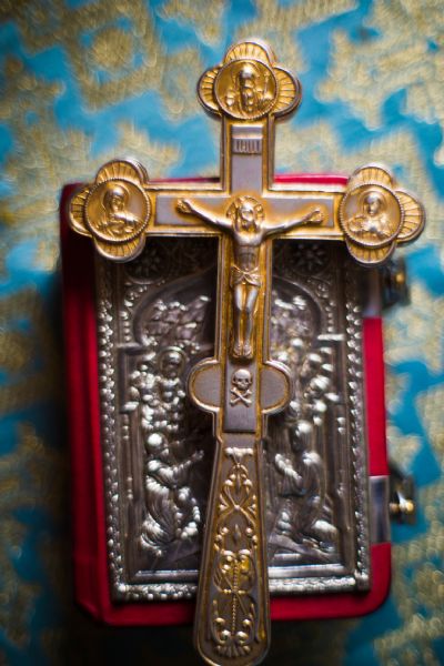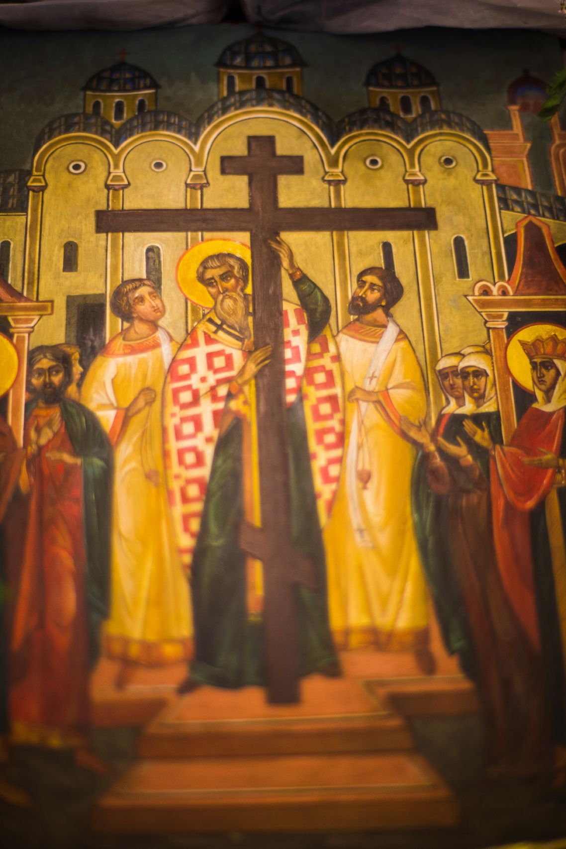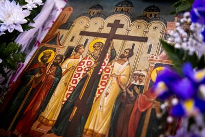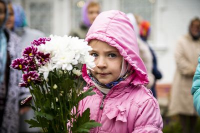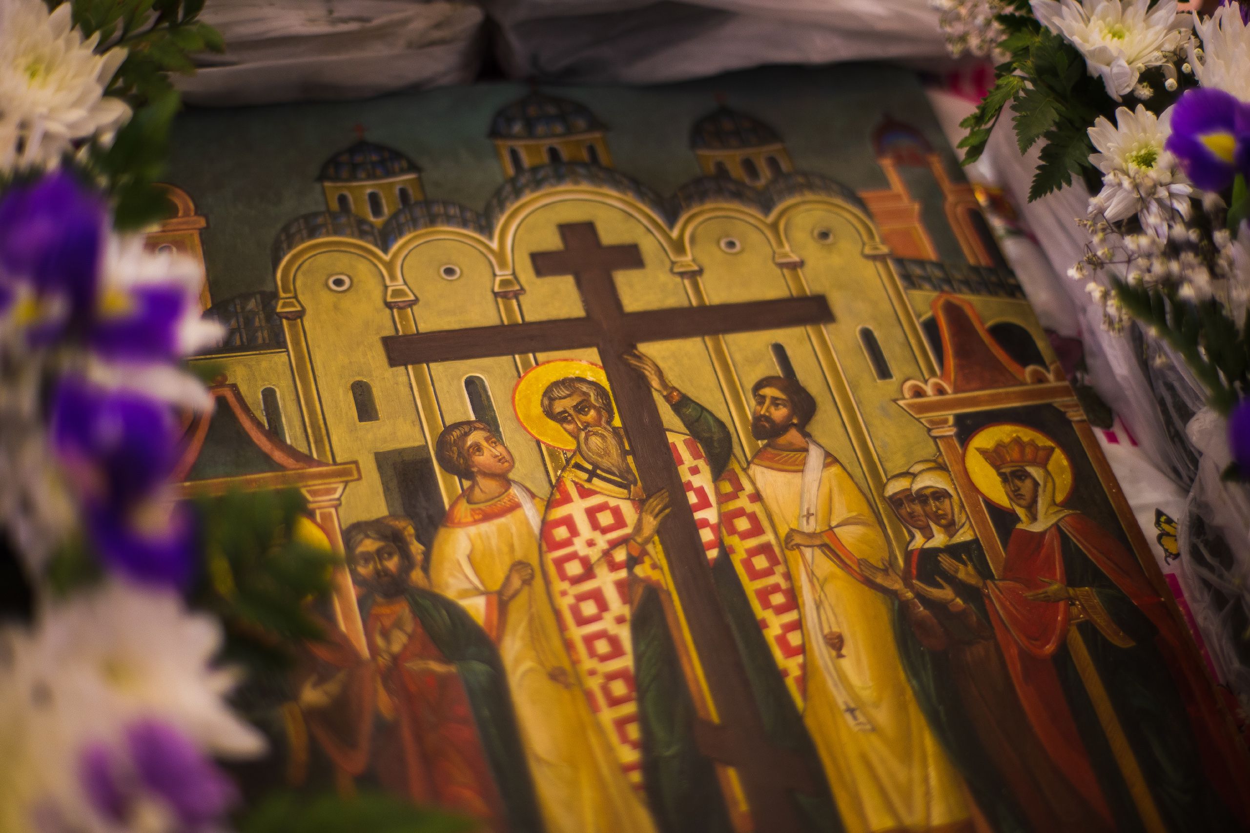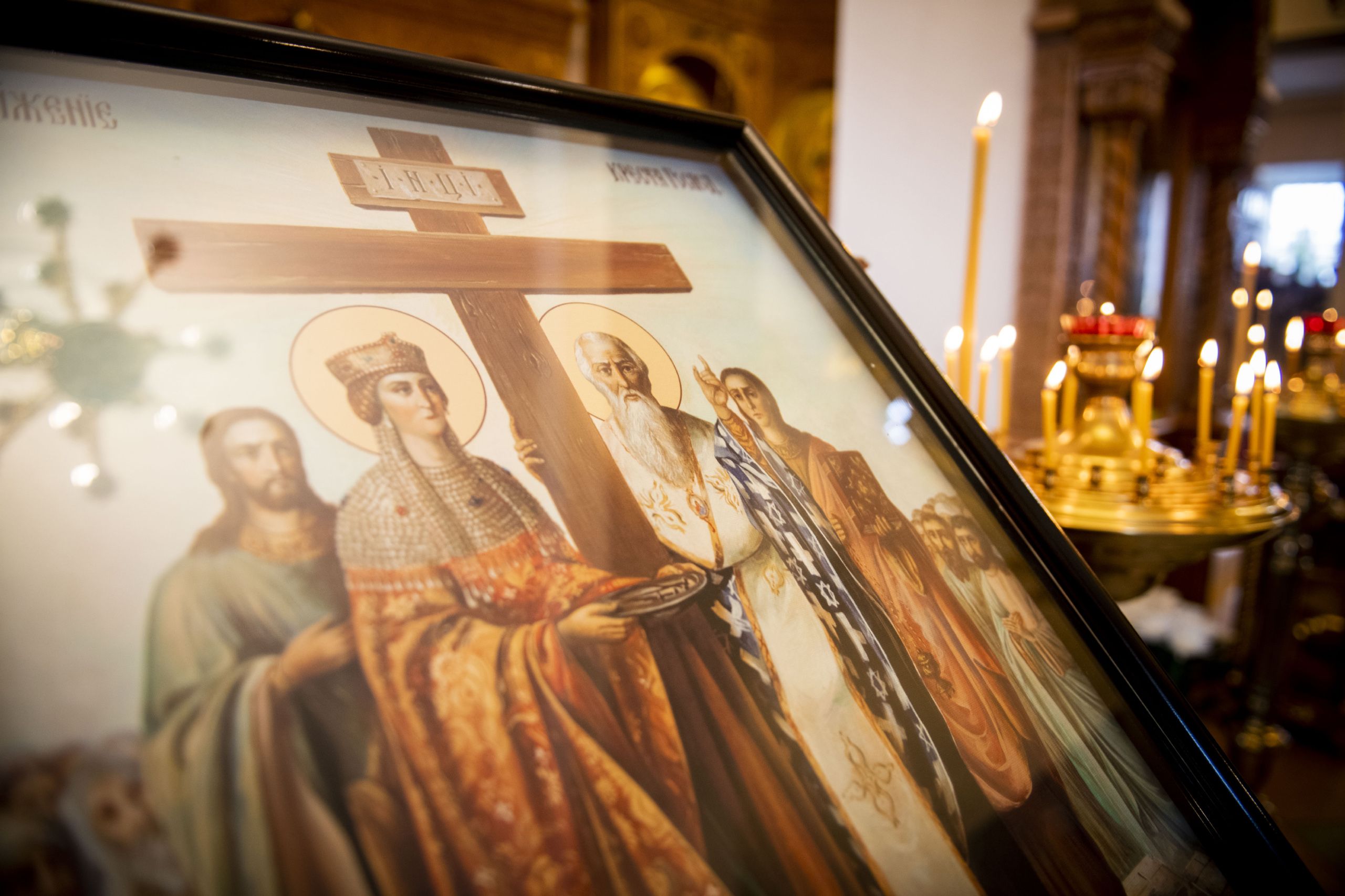 По окончании Литургии состоялся крестный ход вокруг храма. Духовенство и молящиеся совершили поклонение Животворящему Кресту Господню.