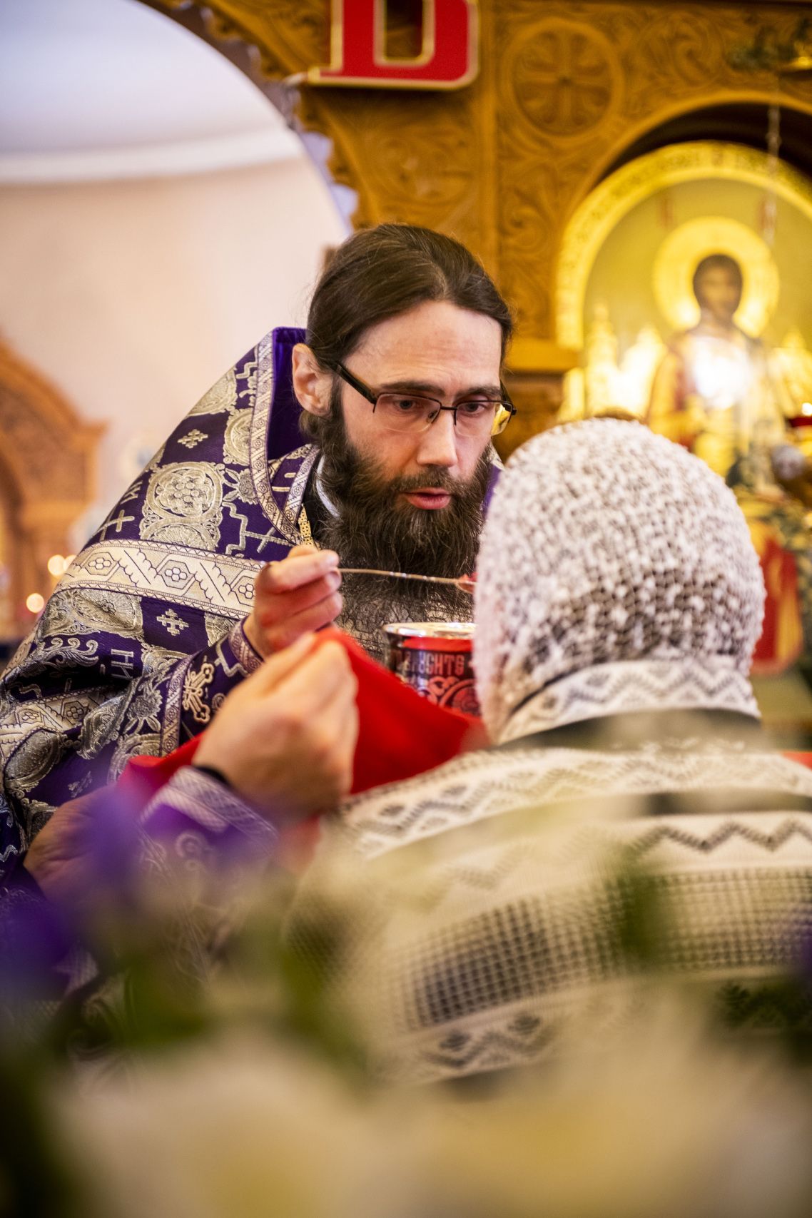 За Литургией главе Татарстанской митрополии сослужили настоятель Воздвиженского прихода протоиерей Олег Батаев, настоятель Введенского Кизического мужского монастыря города Казани игумен Пимен (Ивентьев), благочинный Зеленодольского округа протоиерей Святослав Мирганиев, клирик прихода иерей Андроник Чурашов.