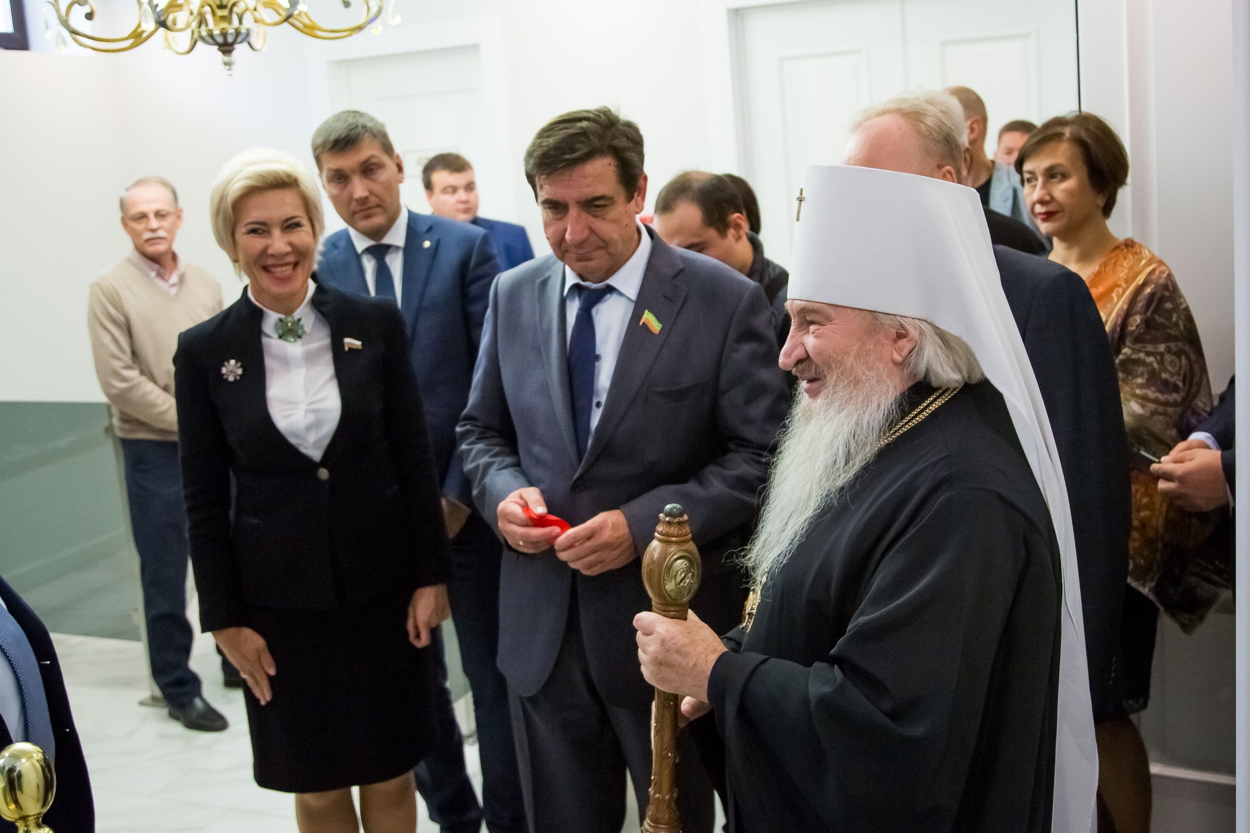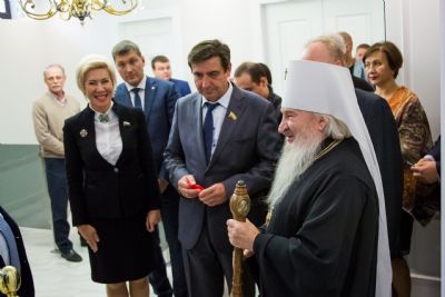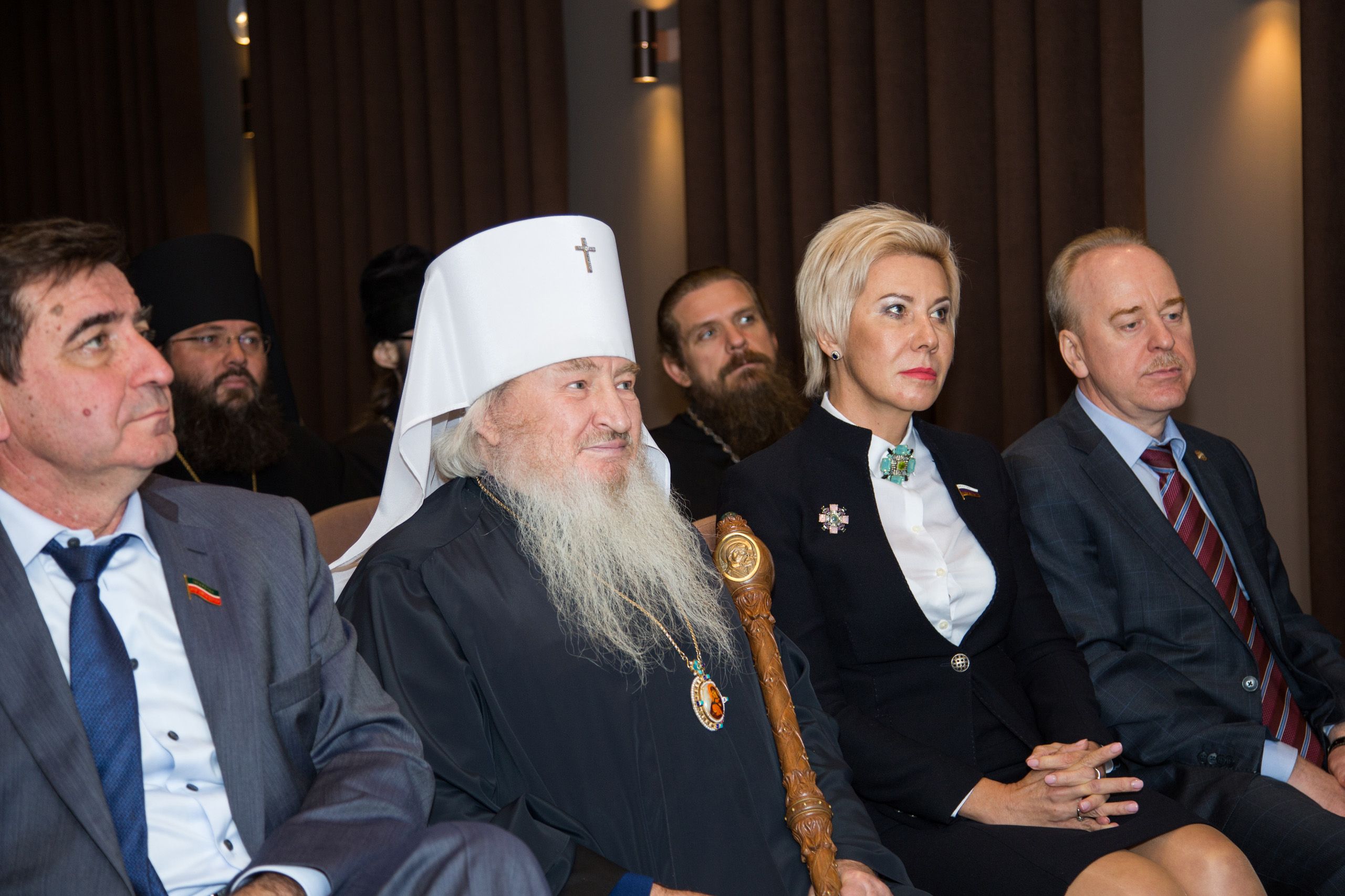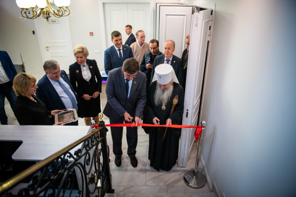 Почетное право перерезать красную ленту было предоставлено митрополиту Феофану и Юрию Камалтынову. Затем глава Татарстанской митрополии приветствовал присутствующих: