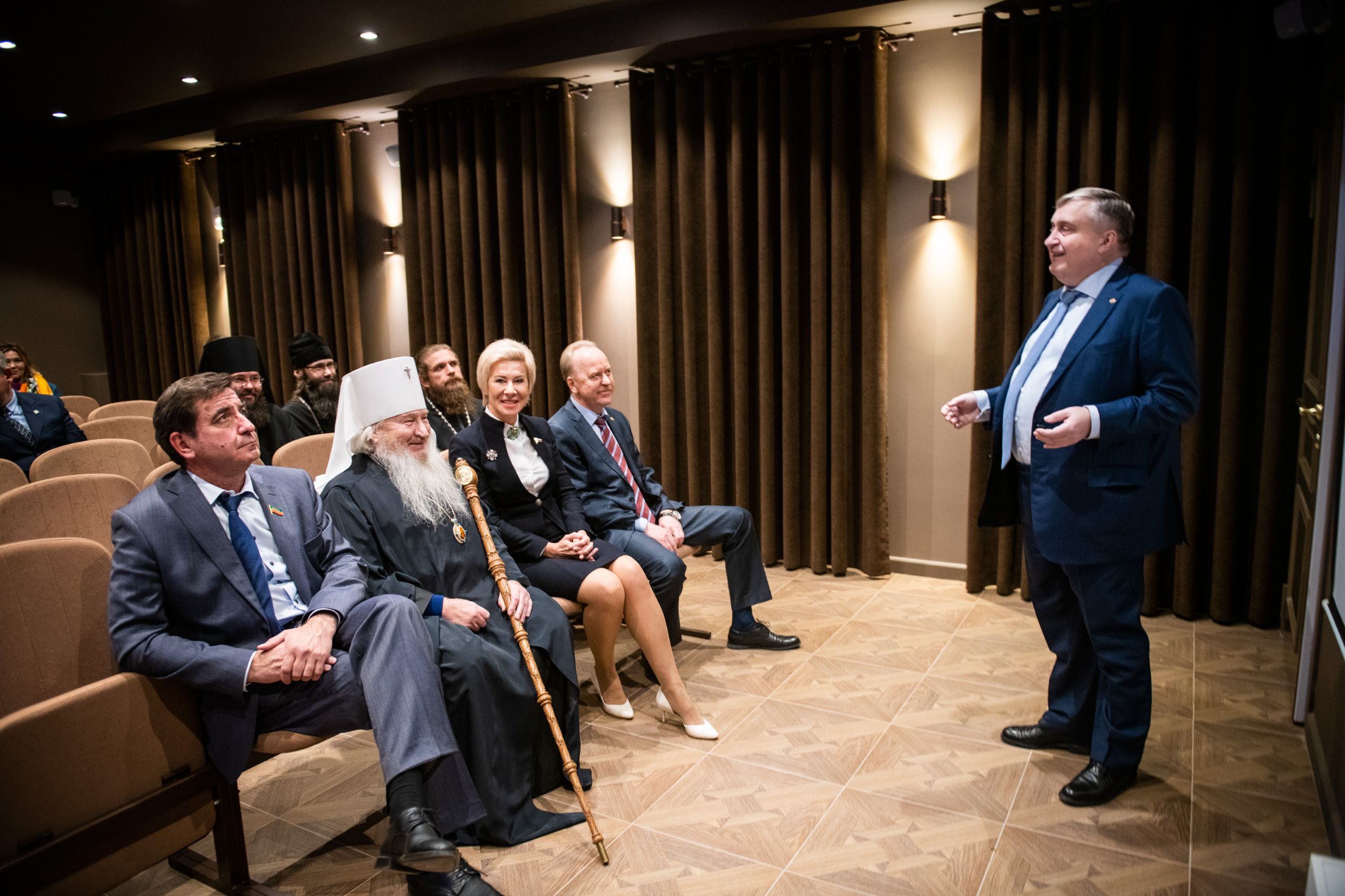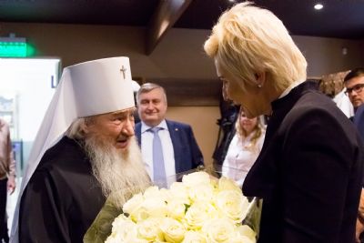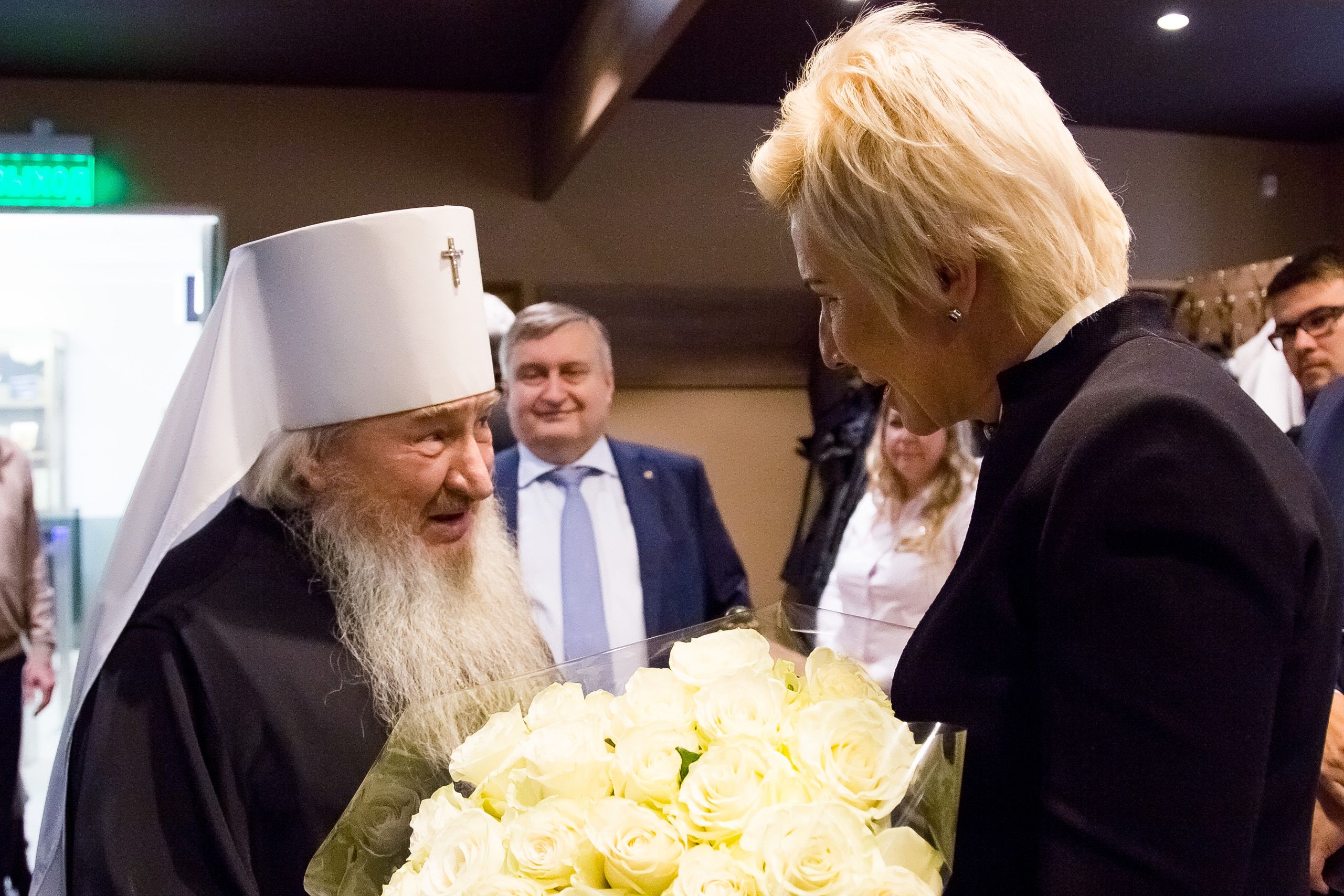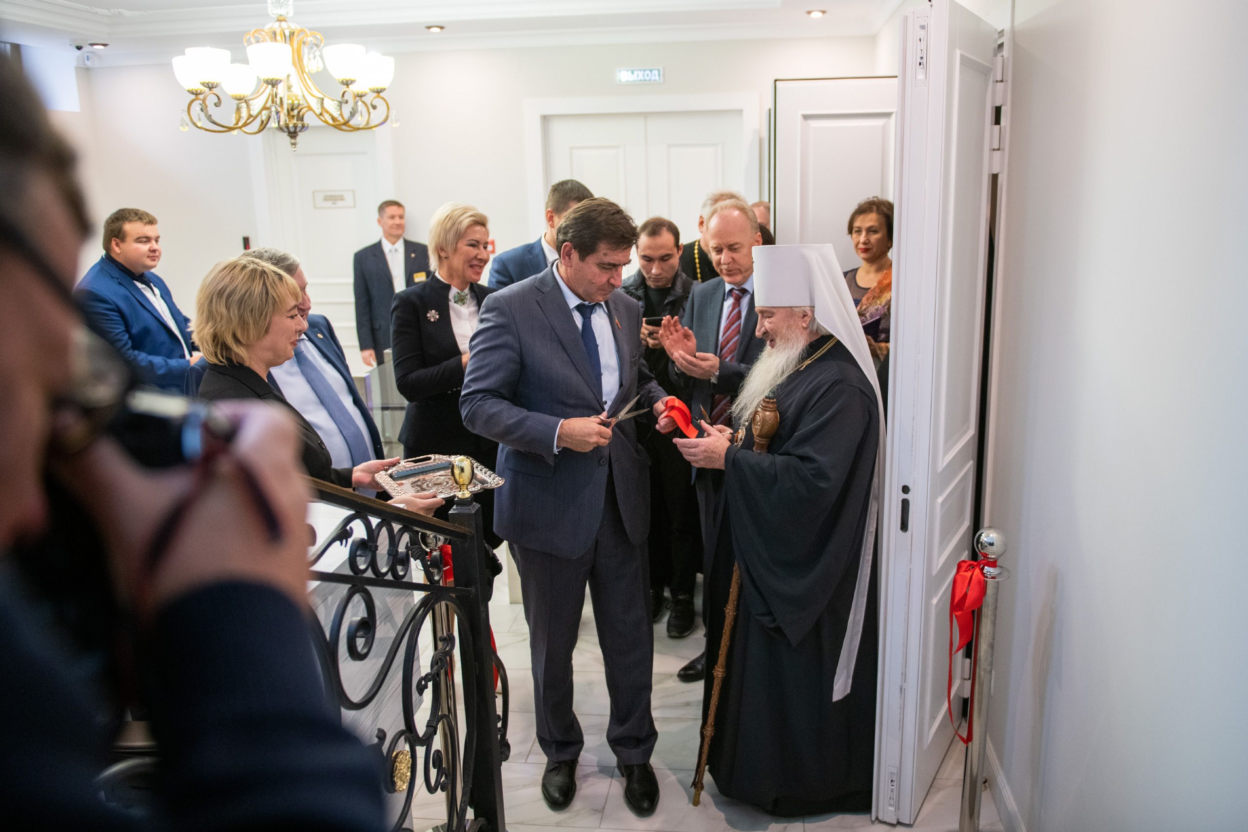 Почетное право перерезать красную ленту было предоставлено митрополиту Феофану и Юрию Камалтынову. Затем глава Татарстанской митрополии приветствовал присутствующих: