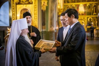 В завершение встречи владыка Феофан преподнес господину Ли Чжаньшу памятное изображение Благовещенского собора.