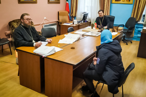 Собеседования провели представители администрации духовной школы — исполняющий обязанности первого проректора протоиерей Алексий Колчерин и проректор по учебной работе иерей Александр Ермолин.
