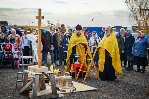 6 октября в Набережных Челнах освятили купол, накупольный крест и колокола для строящейся звонницы церкви великомученика Георгия Победоносца.