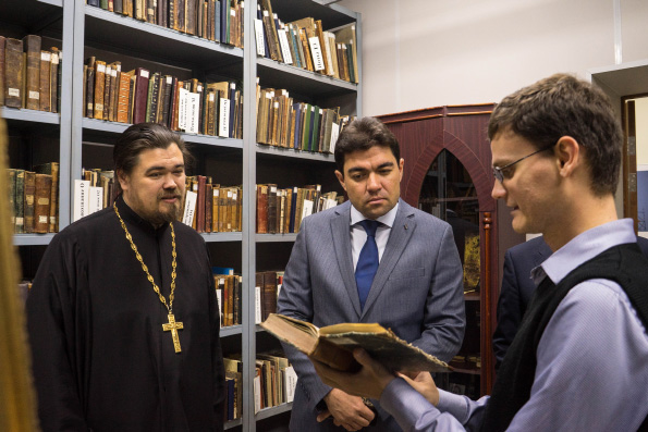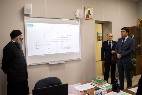Руководители духовных школ обсудили ряд вопросов, после чего для высокого гостя была проведена экскурсия по семинарии. Ему показали библиотеку, компьютерный класс, учебные аудитории и спортивный зал.