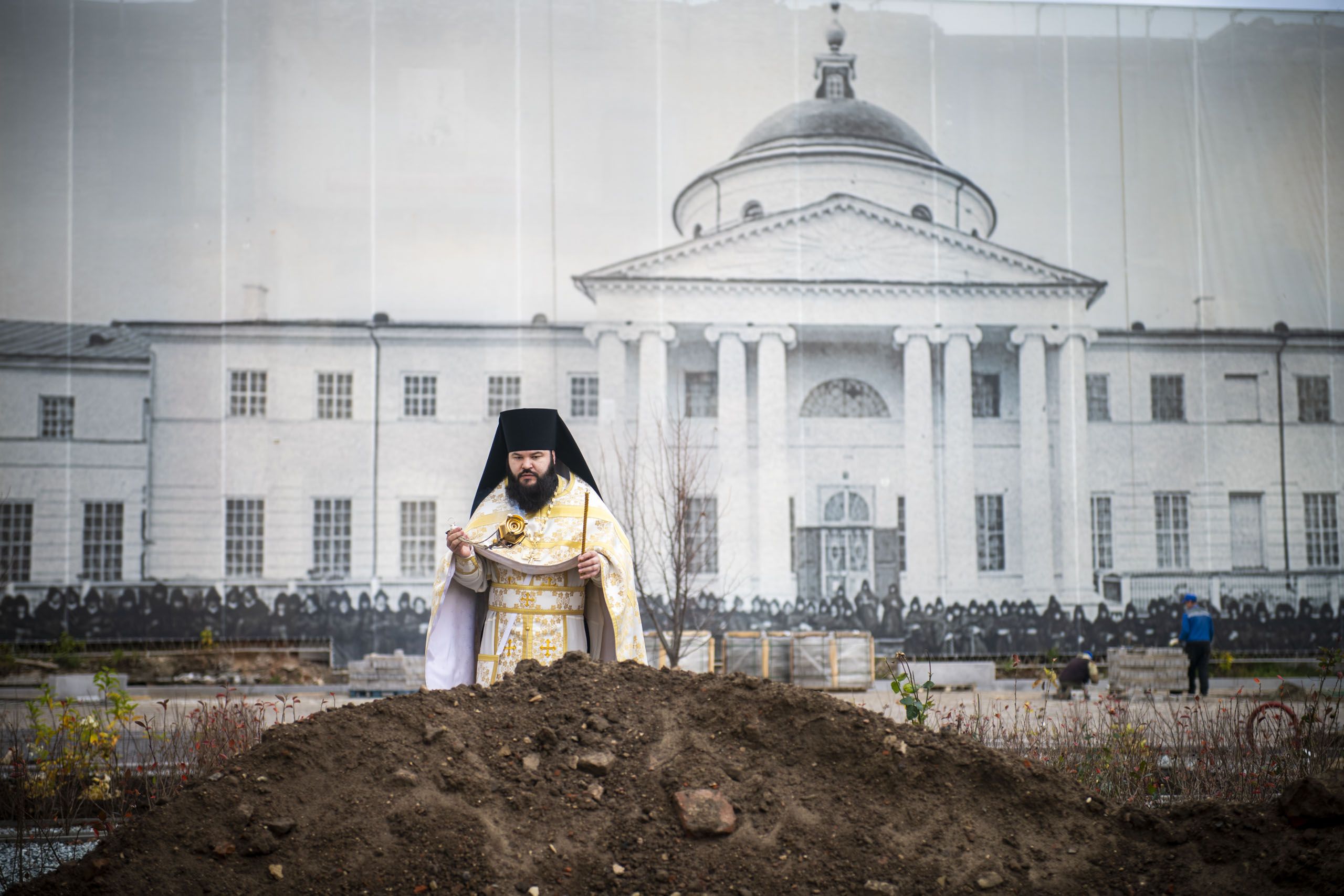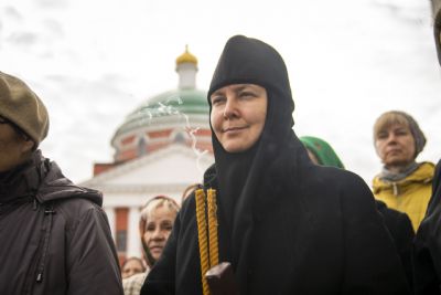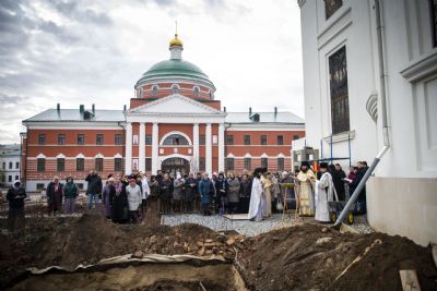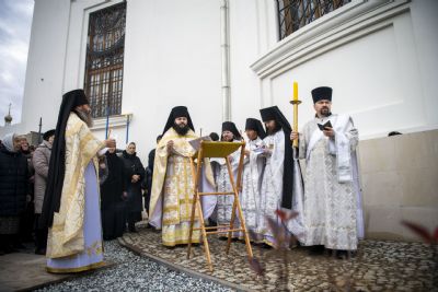 Сегодня малая Пасха, когда соединяются земля и небо. Мы совершаем панихиду над многочисленными останками, обнаруженными при археологических раскопках. Это останки монахинь, на глазах которых закрывалась обитель и разрушался воссоздаваемый ныне собор.