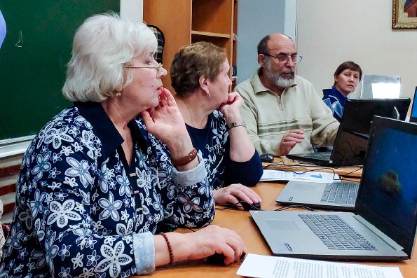 Занятия проходят каждый вторник. Слушатели знакомятся с текстовыми и графическими редакторами, поисковыми системами, социальными сетями и порталами государственных услуг.