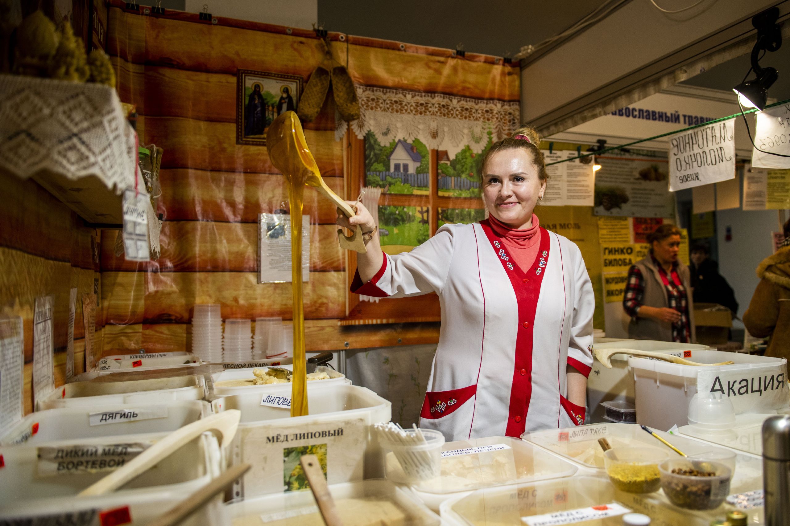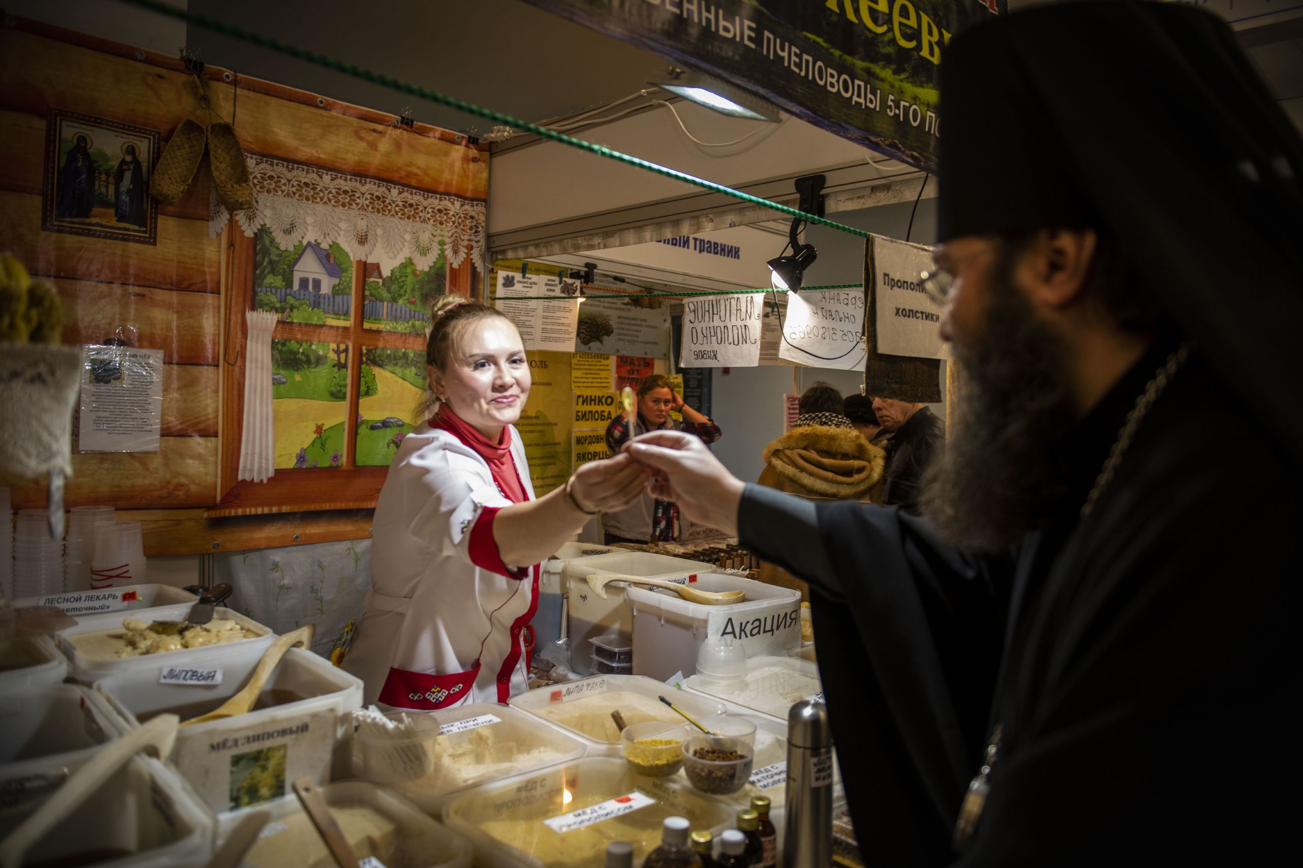 Посетители выставки-ярмарки могут приобрести православные иконы, ладан, масла, духовную литературу, церковные ювелирные изделия, продукцию монастырских и фермерских хозяйств, мед, лекарственные травы, одежду и изделия народных промыслов.