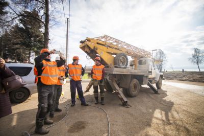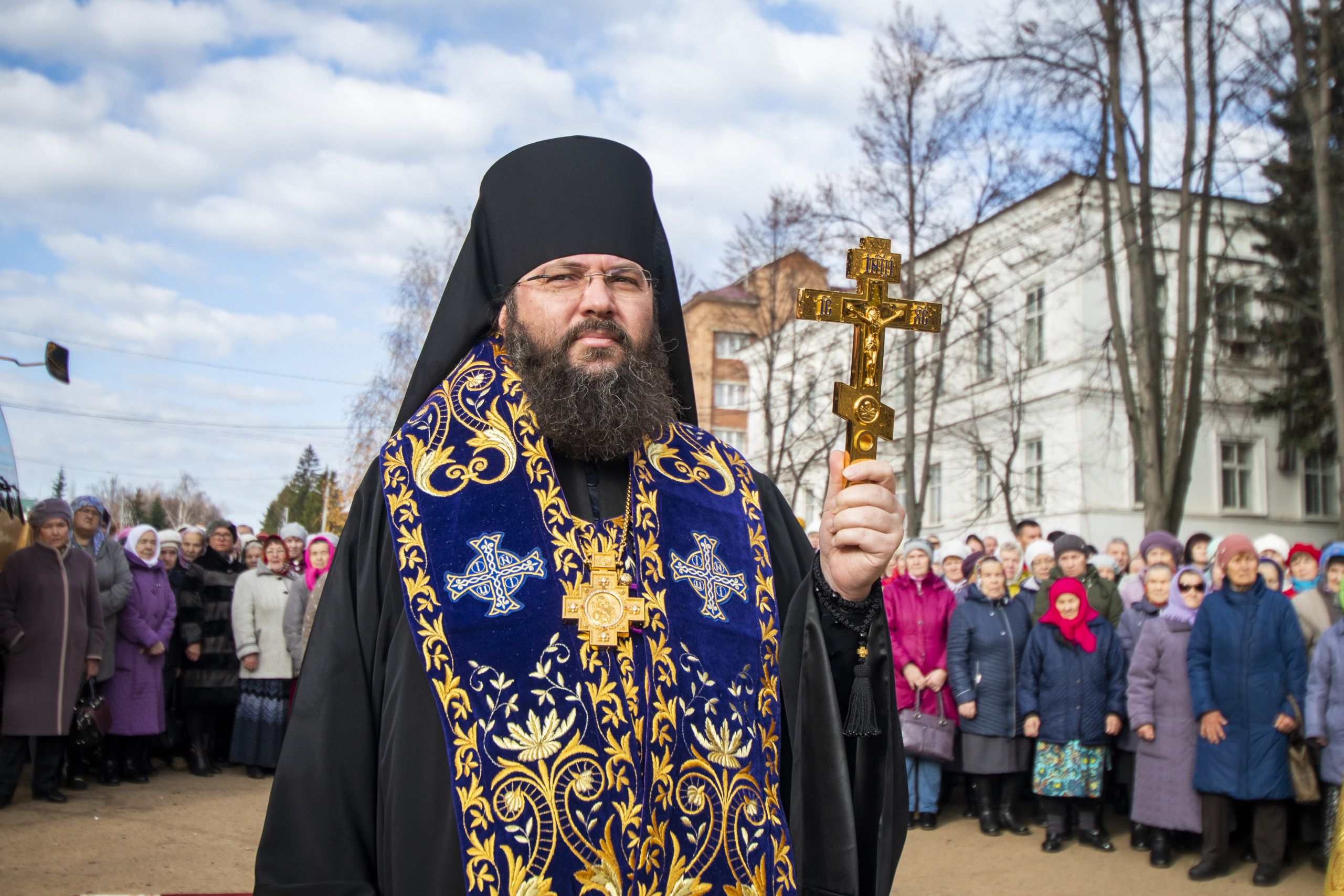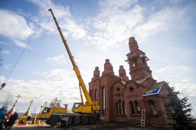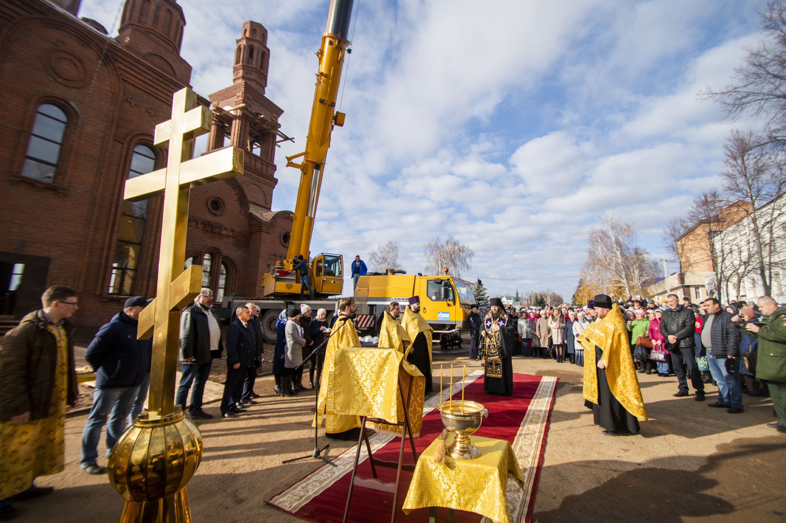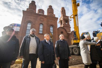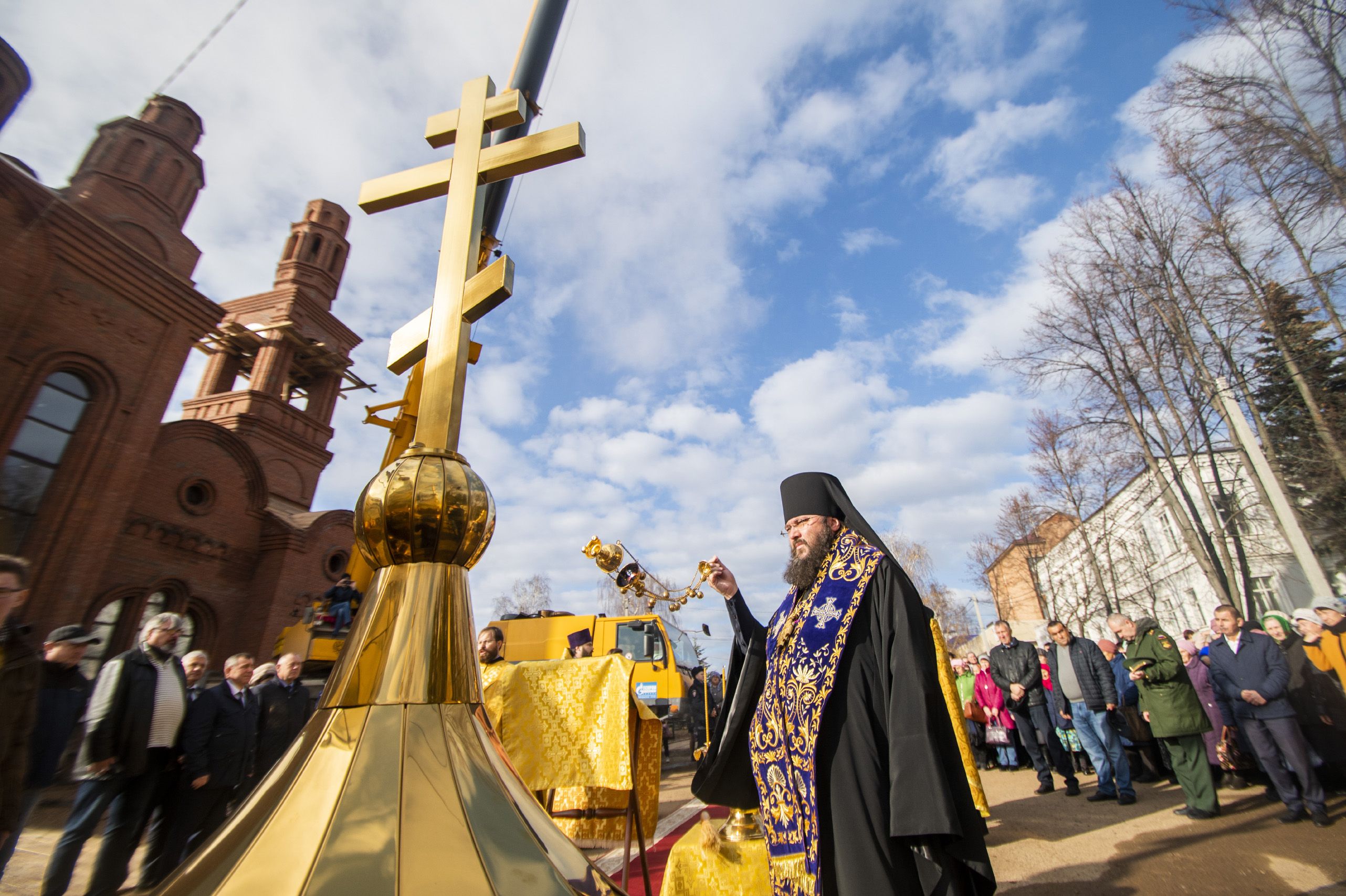 После молебного пения владыка Иннокентий прочитал молитву и окропил кресты и купола святой водой. Затем викарий Казанской епархии поздравил собравшихся с освящением куполов и крестов на сооружаемый Троицкий храм.
