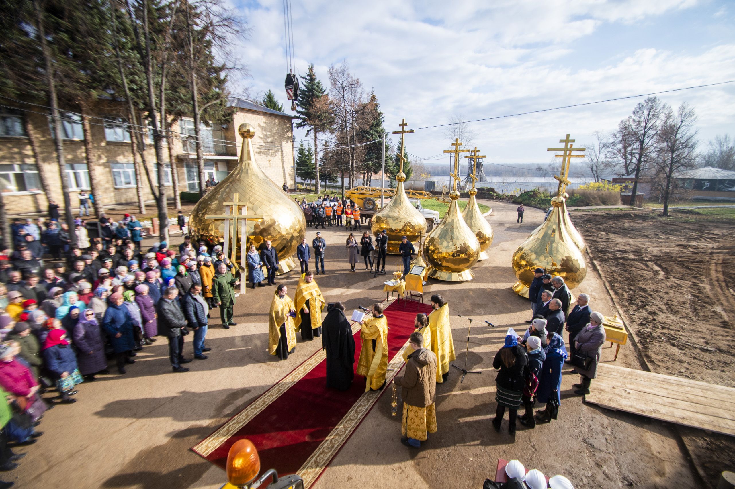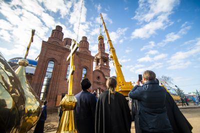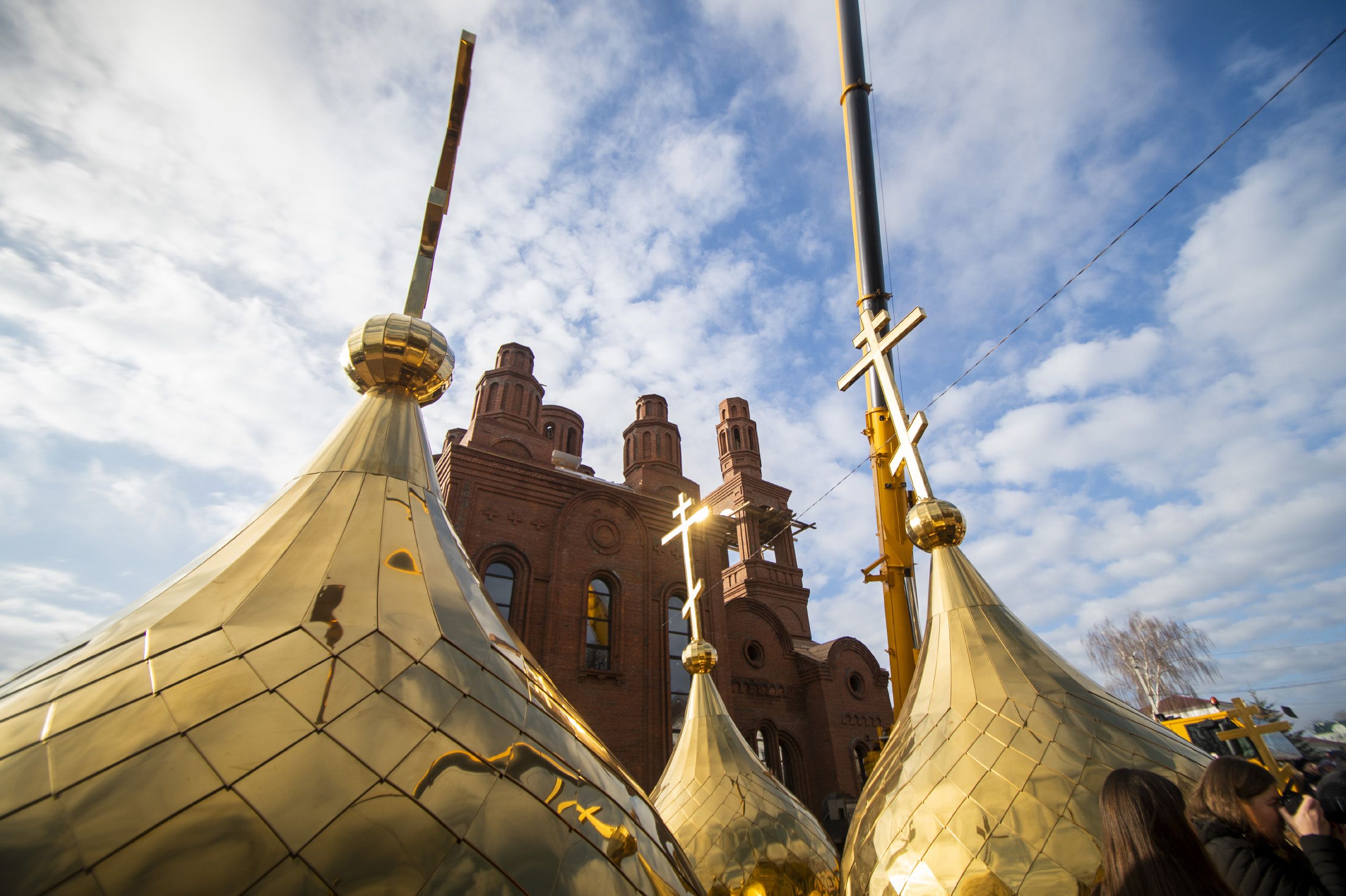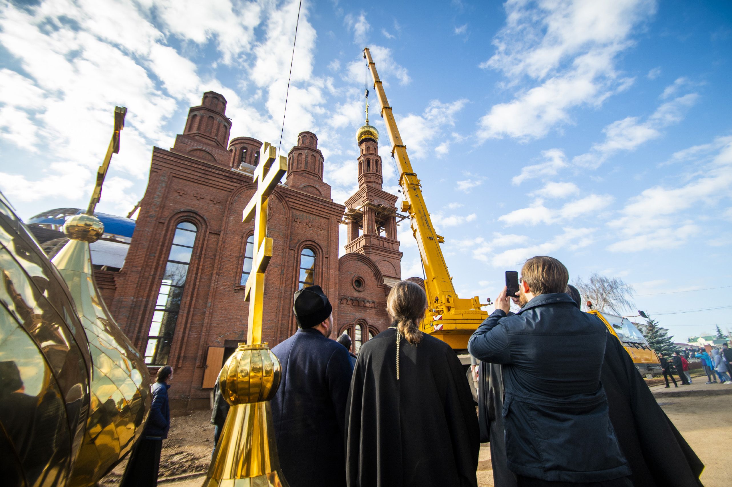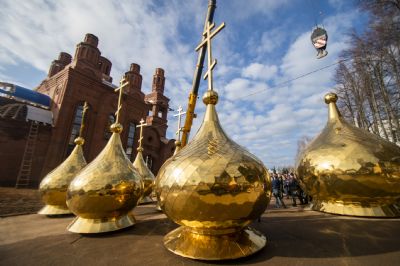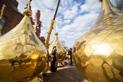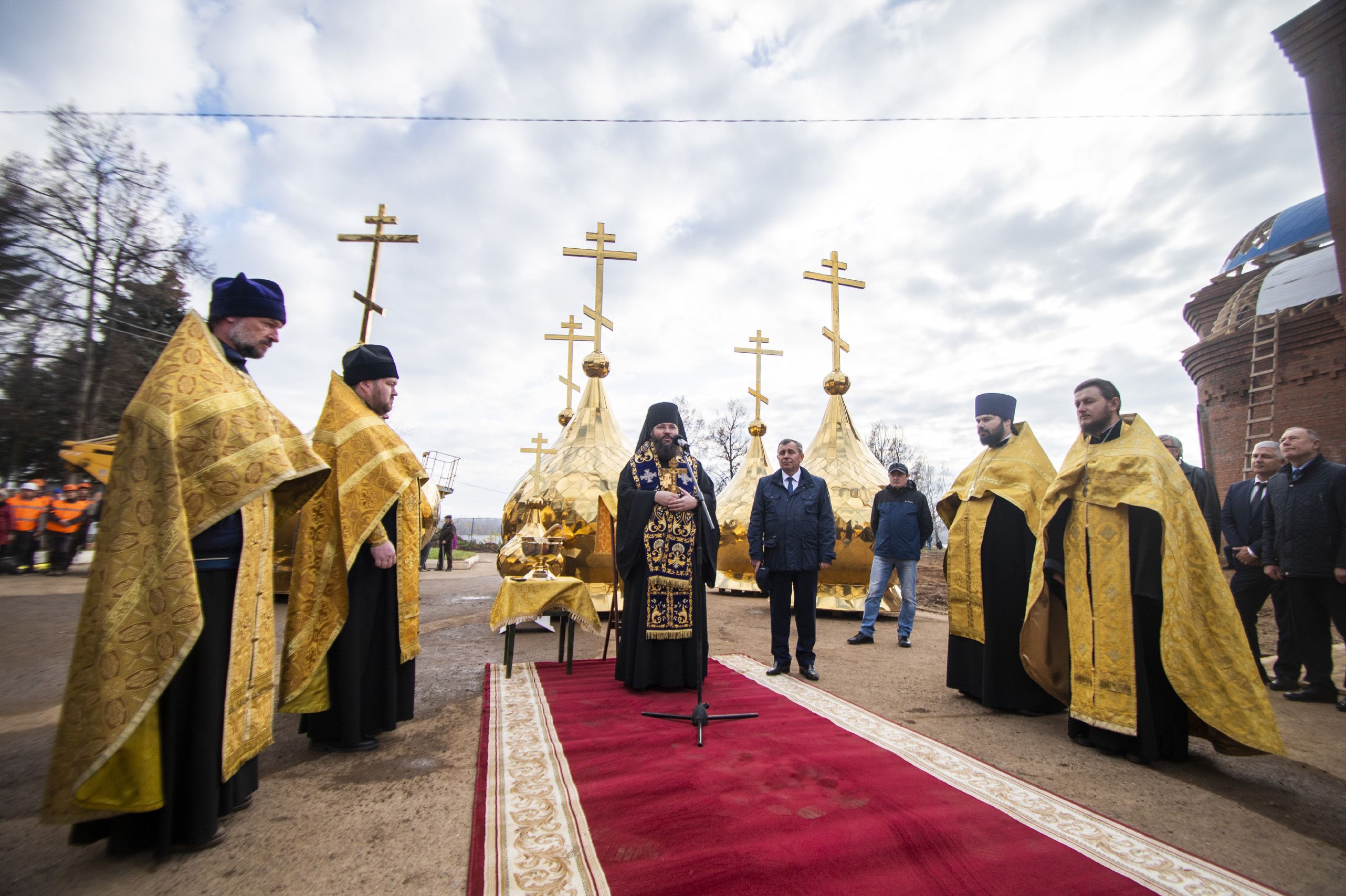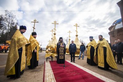 В этот же день купола с крестами были подняты на храм Живоначальной Троицы.