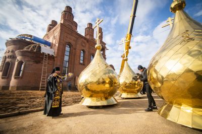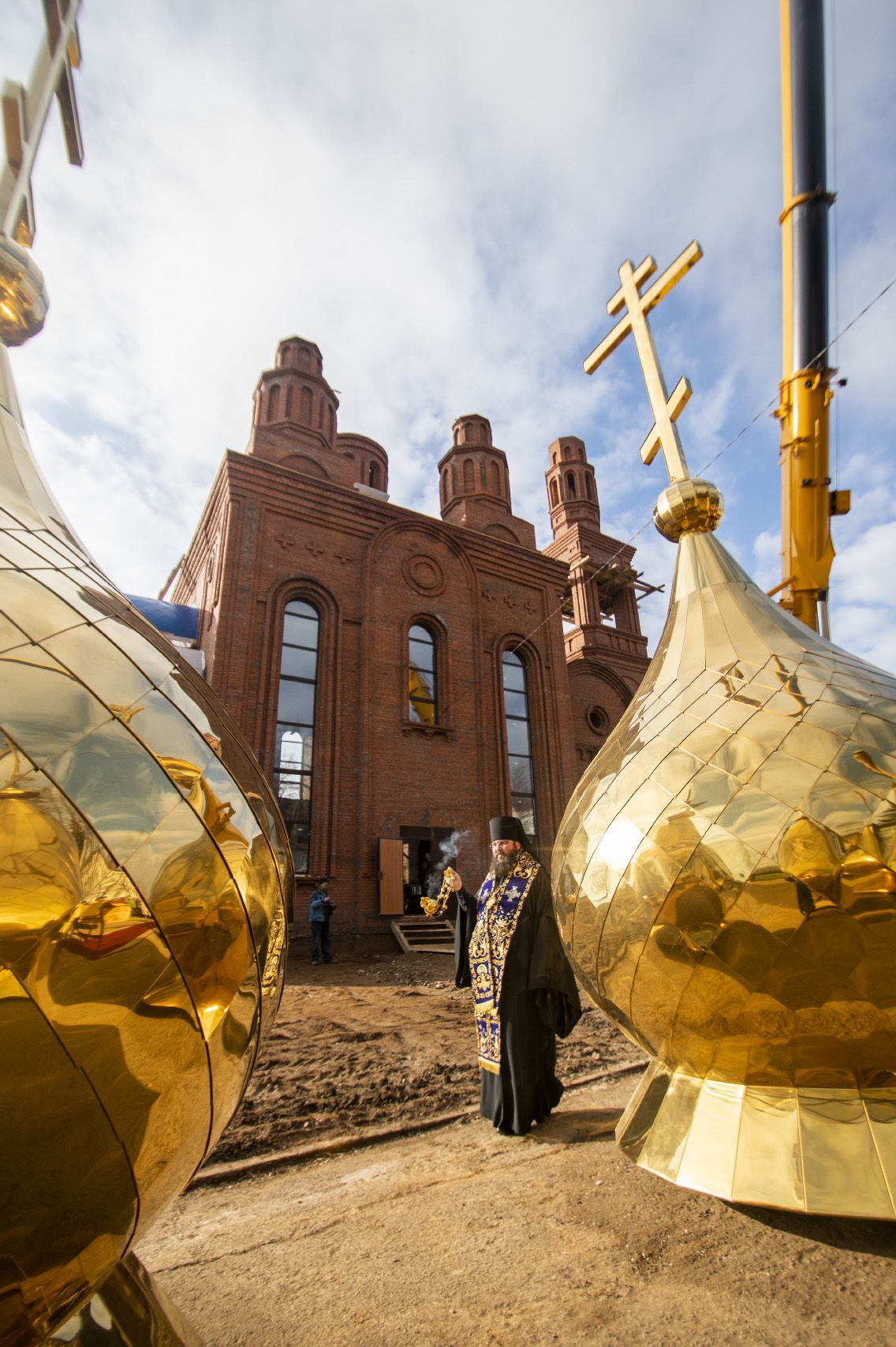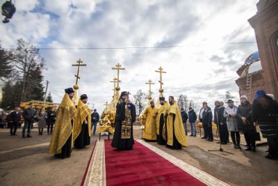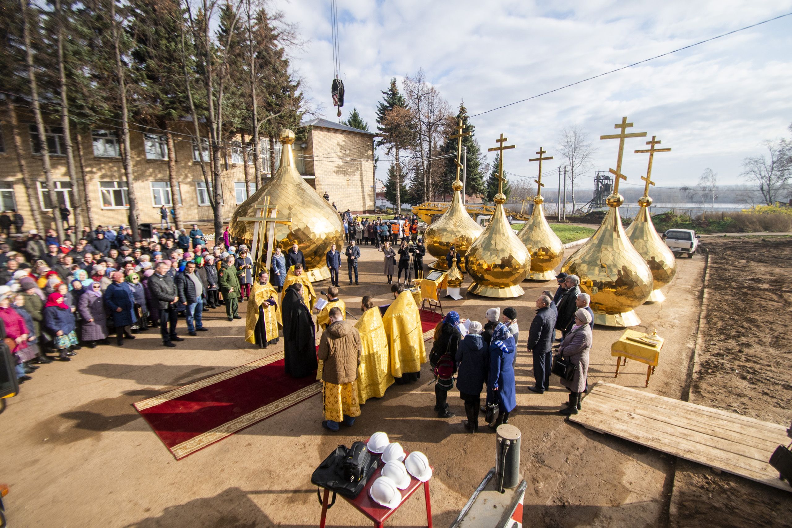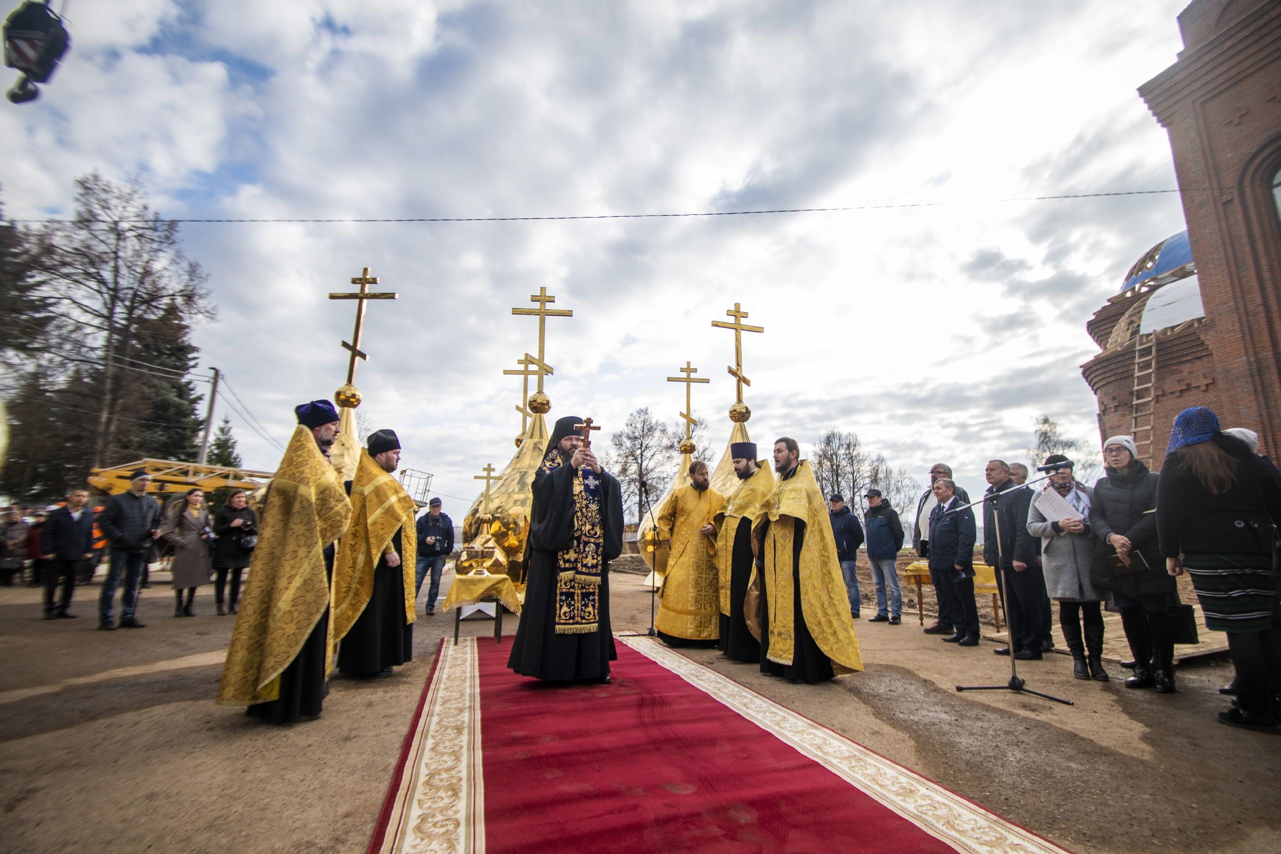 В этот же день купола с крестами были подняты на храм Живоначальной Троицы.