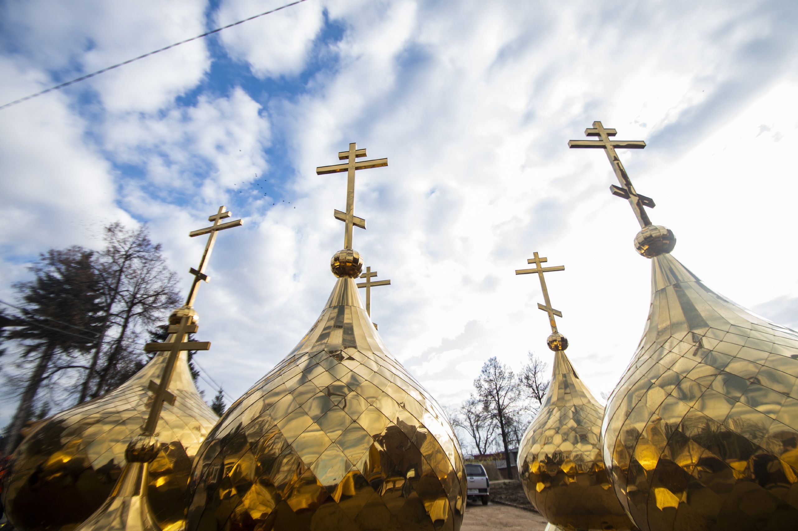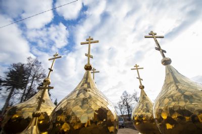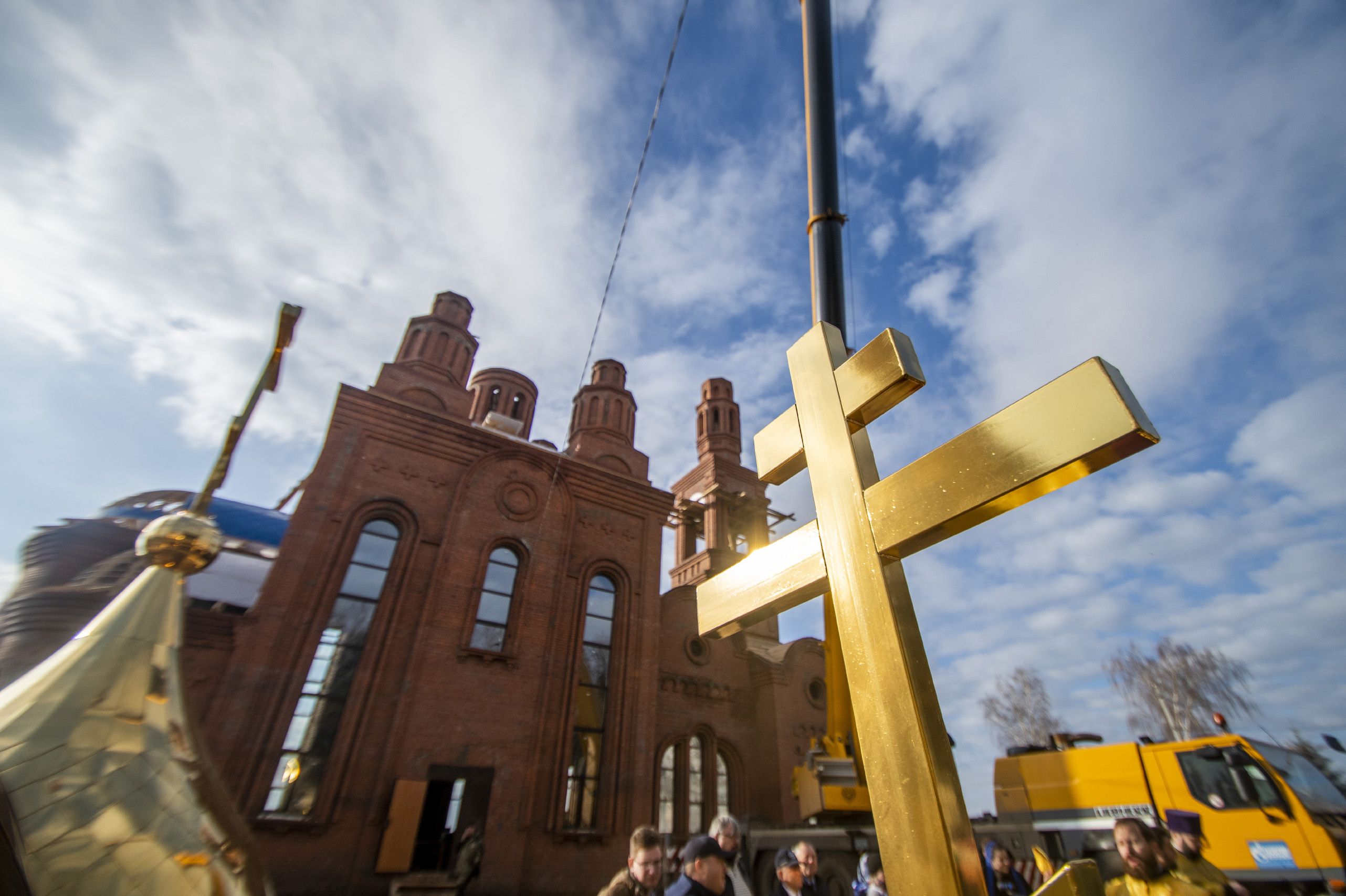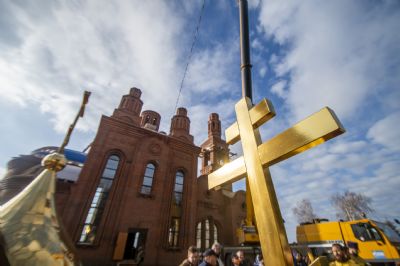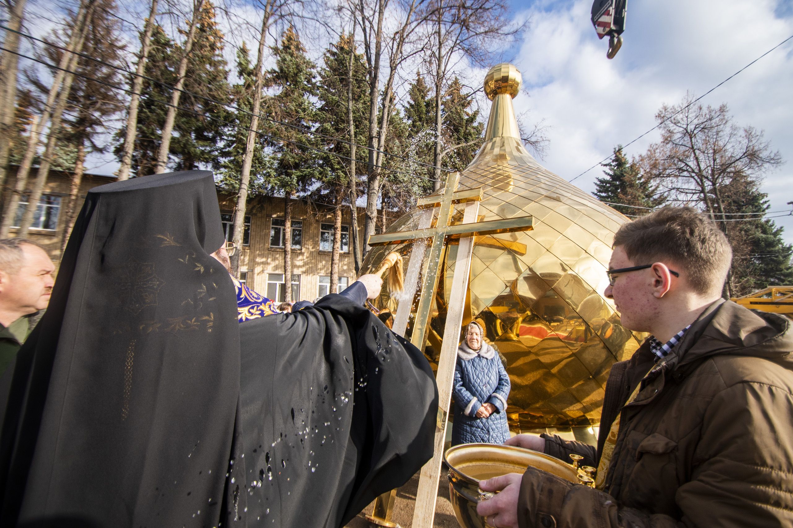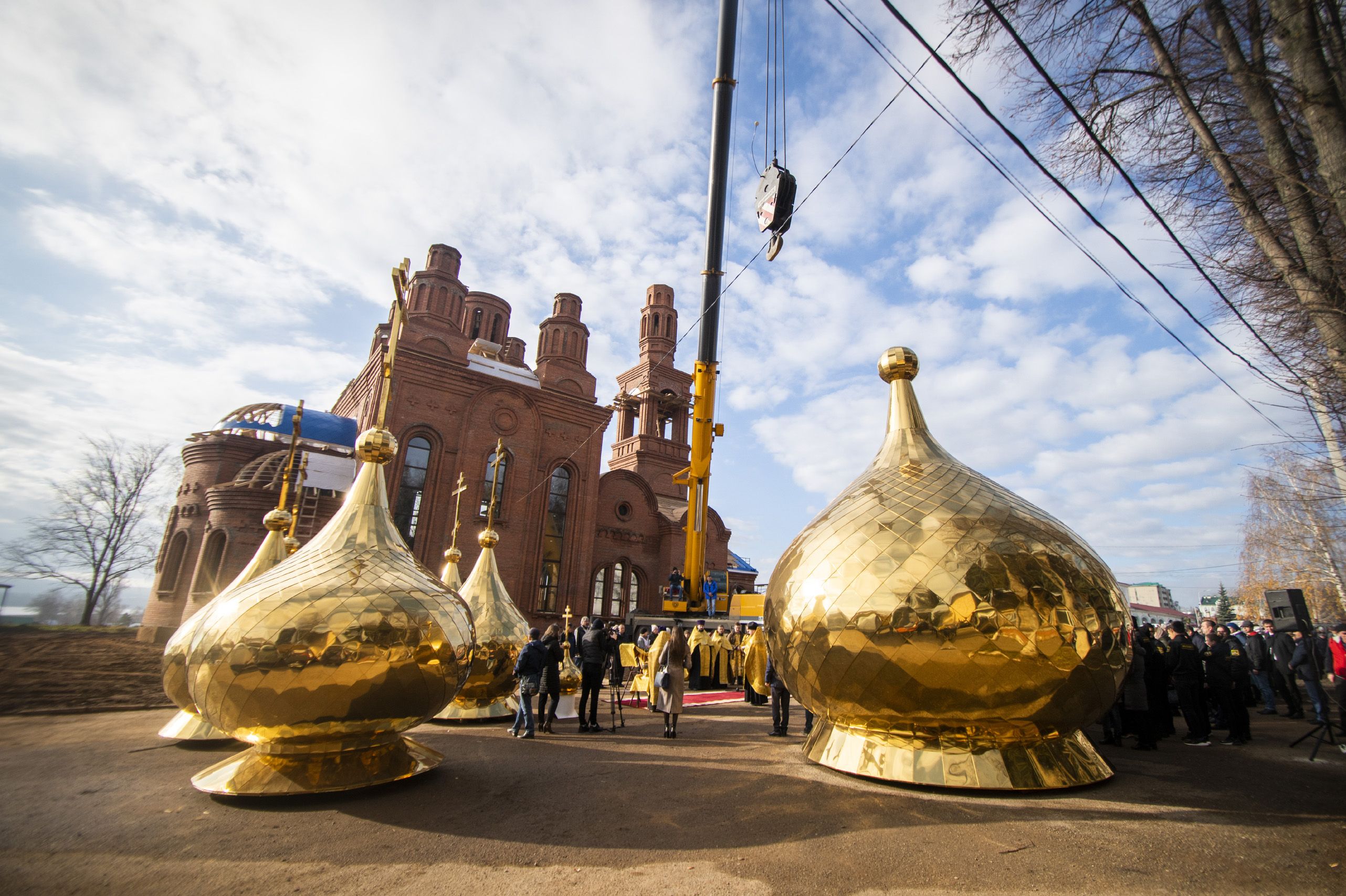 В этот же день купола с крестами были подняты на храм Живоначальной Троицы.