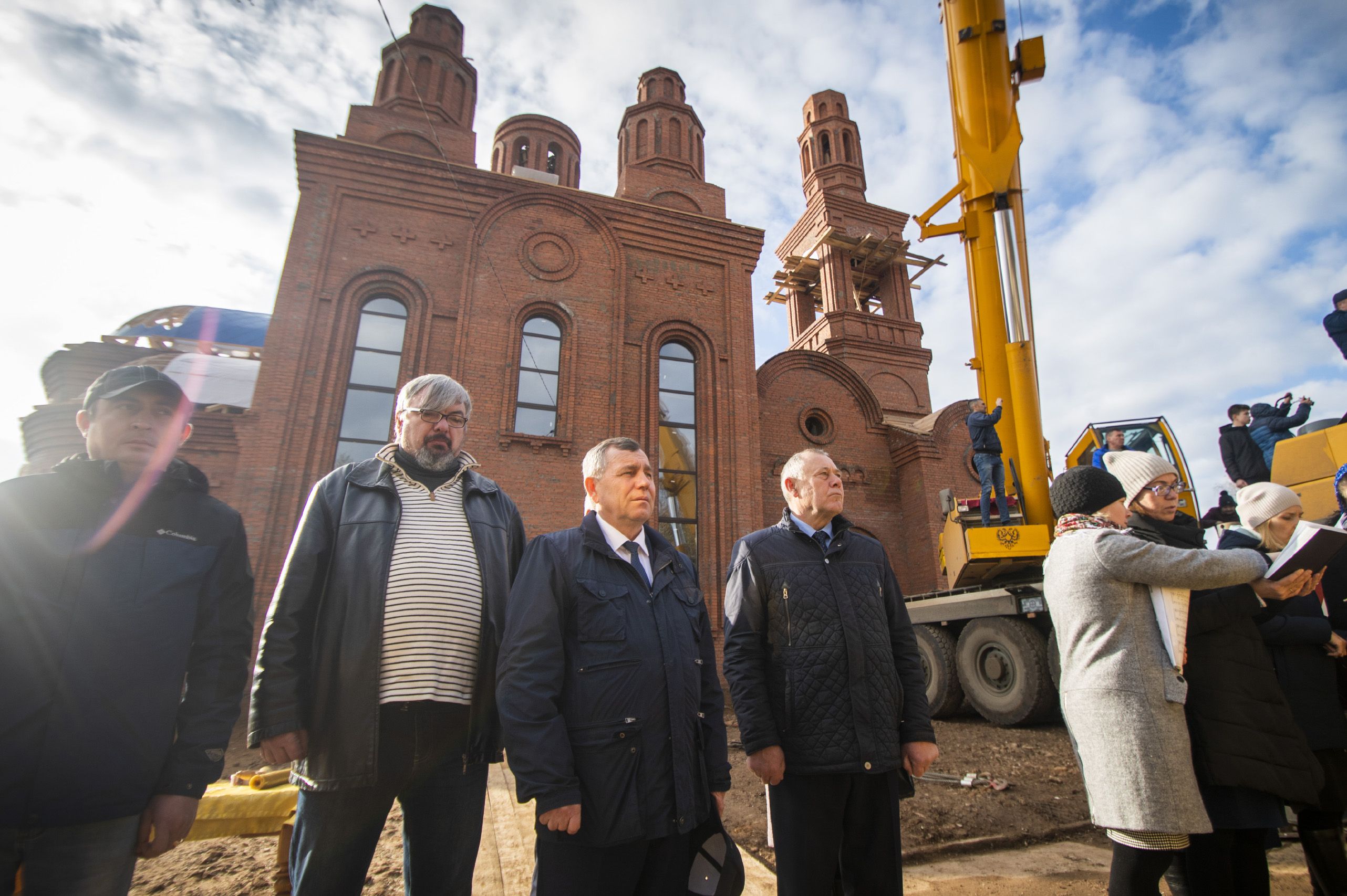 Затем к присутствующим обратился Анатолий Иванов. «Сегодня на Мамадышской земле — исторический день. Мы являемся свидетелями возведения освященных куполов на храм Живоначальной Троицы. Церковь строится в одном из самых красивых мест нашего города. Вы знаете, что до 1933 года на этом месте стоял собор, носивший имя Святой Троицы. До появления города здесь находилось село, которое именовалось Троицким — в честь разрушенного в советские годы храма. Старожилы рассказывают: когда храм взрывали, верующие люди стояли на коленях и плакали. Это было большое горе, и историческая справедливость должна восторжествовать», — сказал глава района.