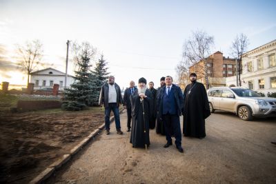 По завершении мероприятия митрополит Феофан в сопровождении А.П. Иванова посетил Троицкий храм и ознакомился с ходом строительных работ.