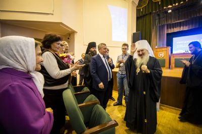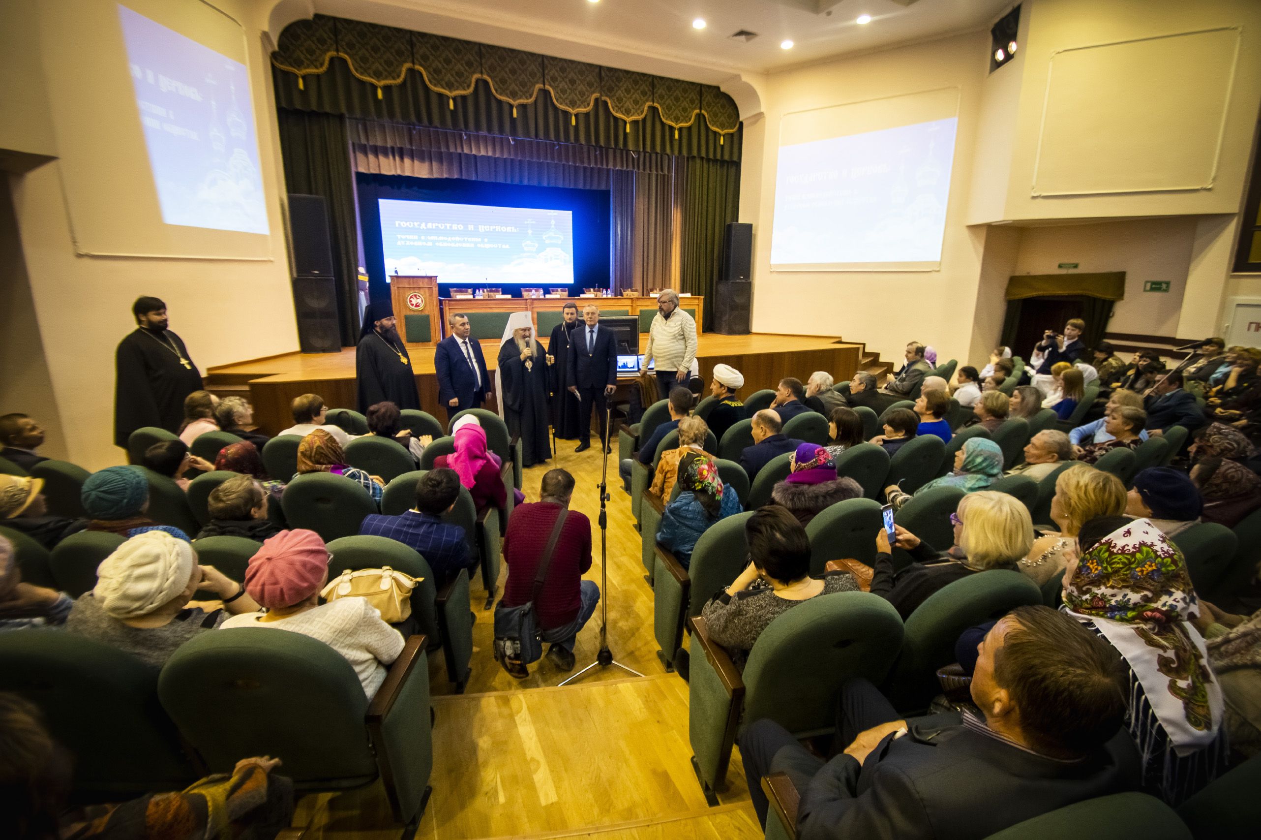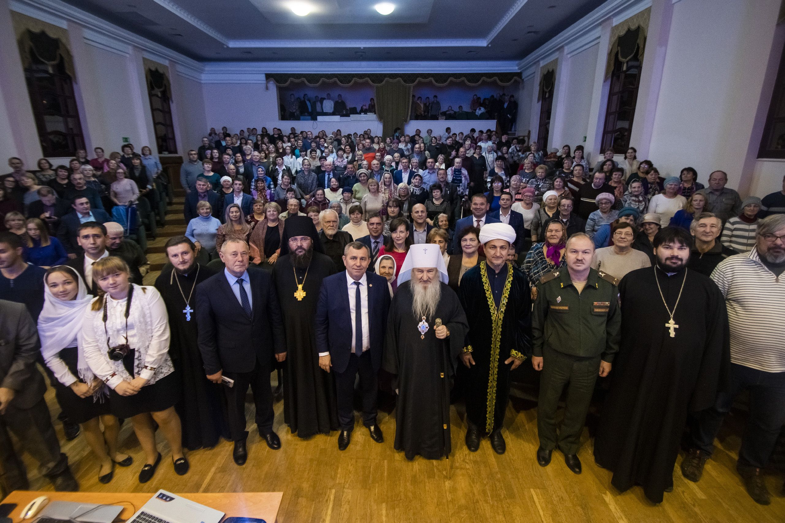 В этом зале сегодня собралась православная общественность. Православие для нас является смыслом и основой жизни. Но это ни в коем случае не значит, что мы должны относиться по-иному к тем, кто бок о бок живет с нами. У нас — Православие, а у них — ислам. Мы живем в мире и согласии, мы помогаем друг другу. Мы разделяем во многом нравственные ценности, но каждый хранит свою веру.