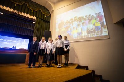 Затем учащиеся воскресной школы «Росток», действующей при храме преподобной Ксении Римляныни, презентовали собравшимся свою деятельность и исполнили гимн учебного заведения (директор — Татьяна Николаевна Шипкова).