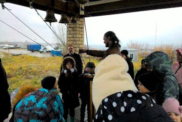 Затем преподаватель приходской школы звонарей Евгений Корпуснов рассказал детям и взрослым о видах колокольного звона и использовании колоколов в богослужебной практике Православной Церкви. Он также сообщил, что колокола положительно влияют на человека.