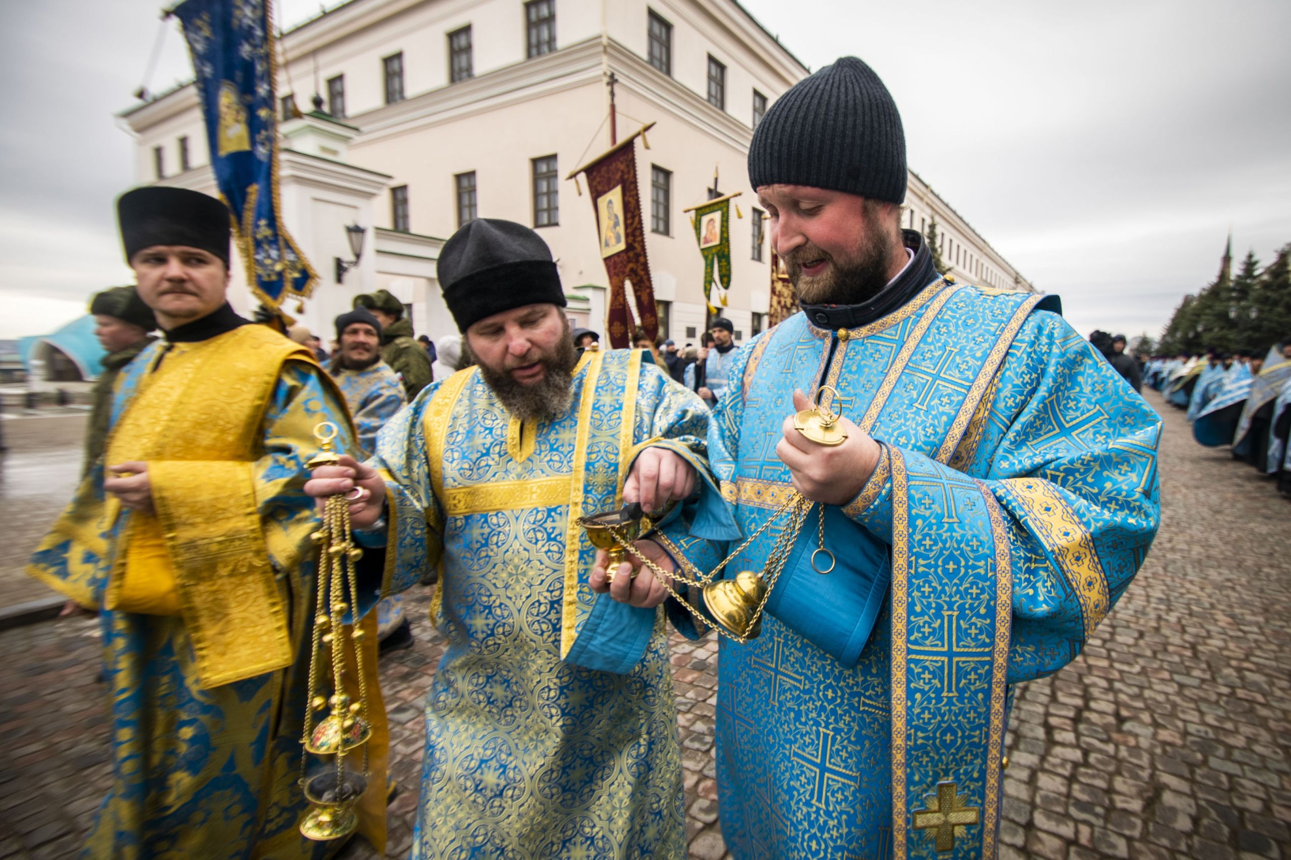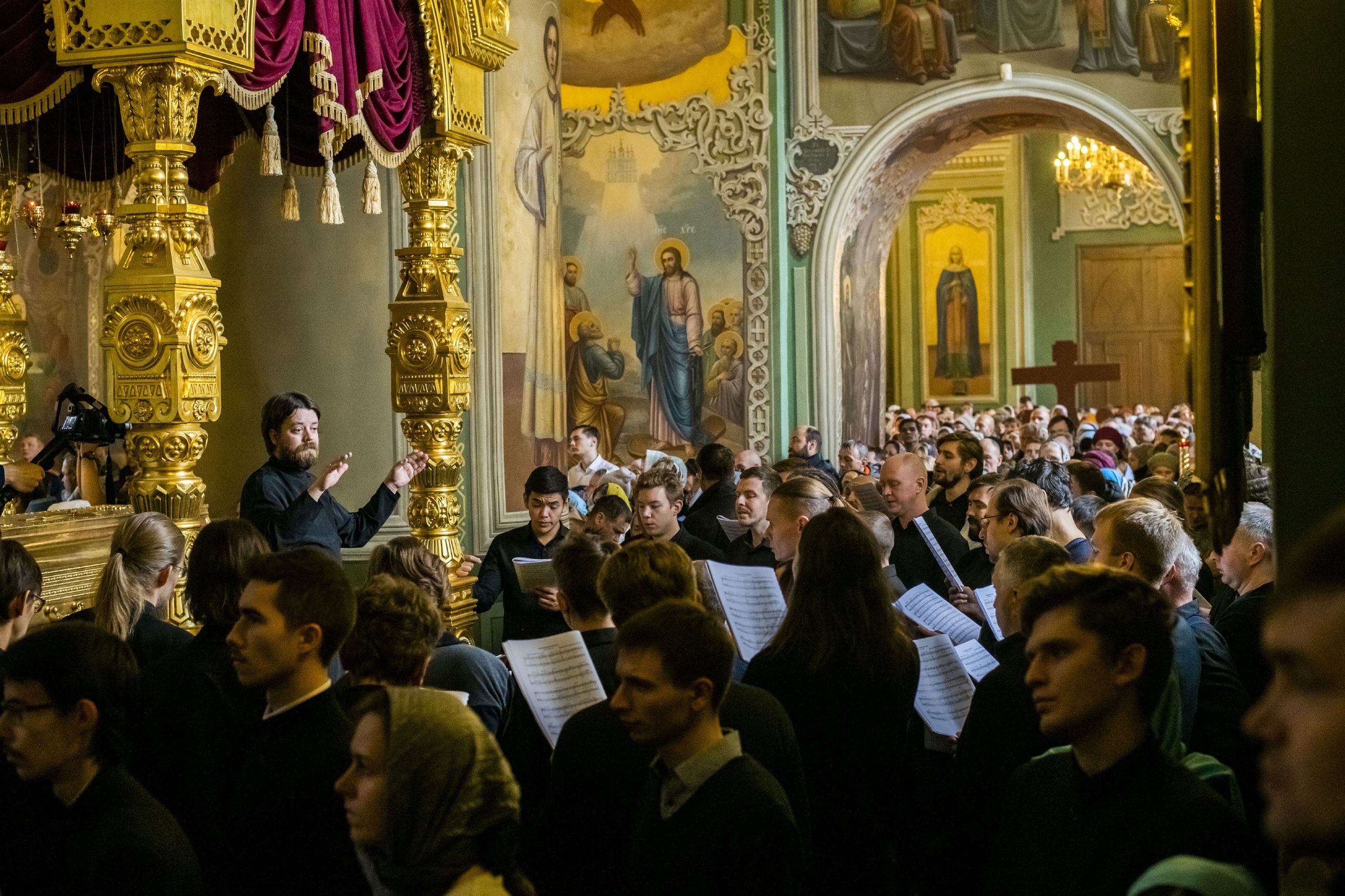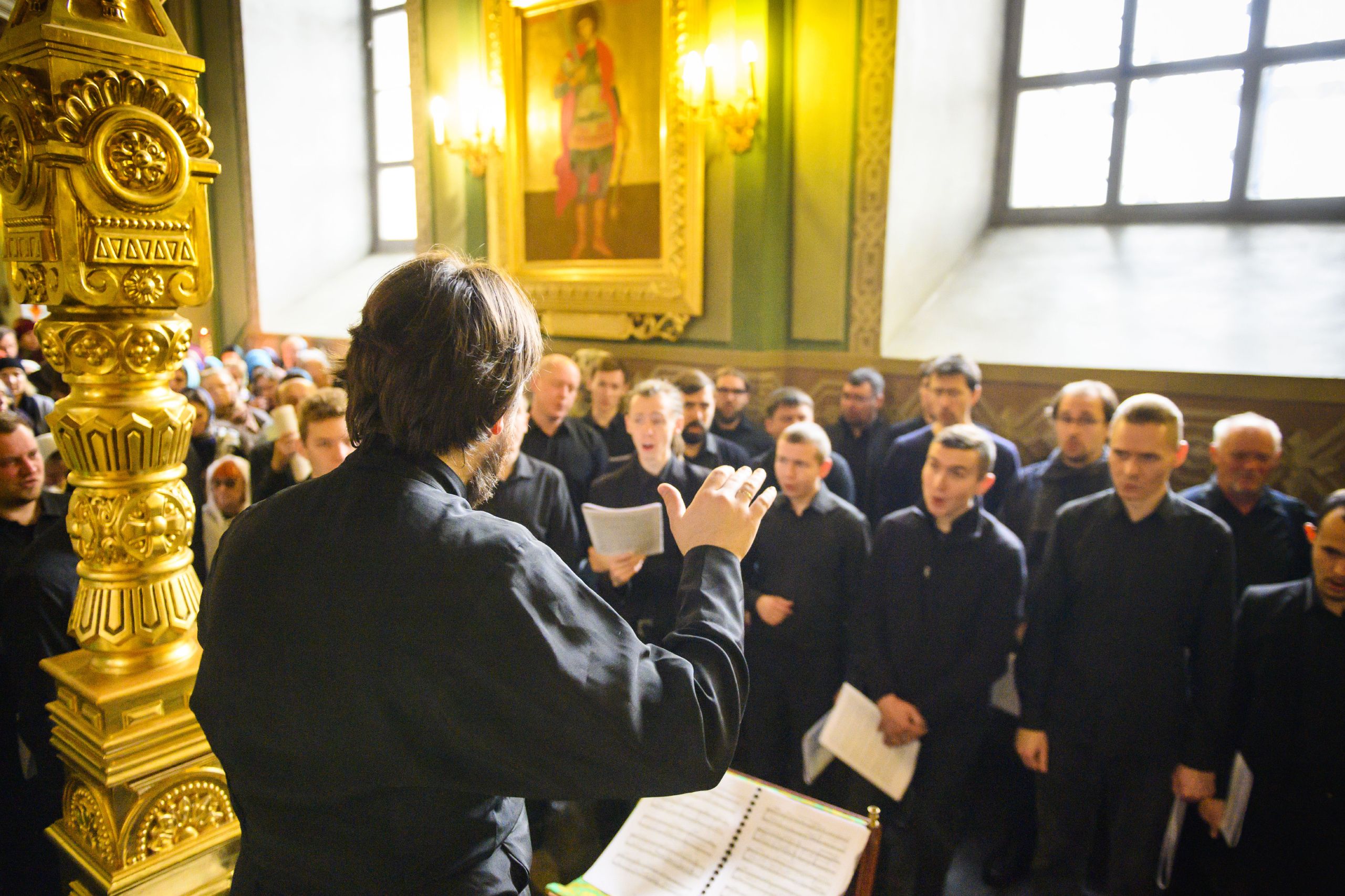 Песнопения исполнялись сводным мужским хором города Казани под управлением Дениса Рогова.