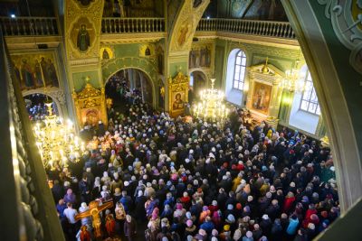 За Литургией молились монашествующие, сотрудники епархиальных отделов, студенты Казанской духовной семинарии, многочисленные верующие жители столицы и прибывшие в Татарстан паломники.