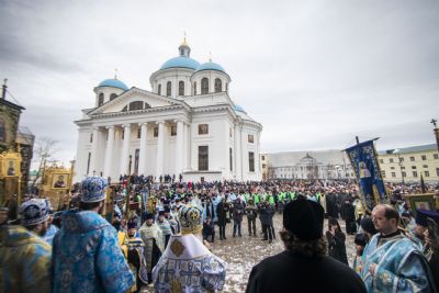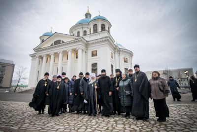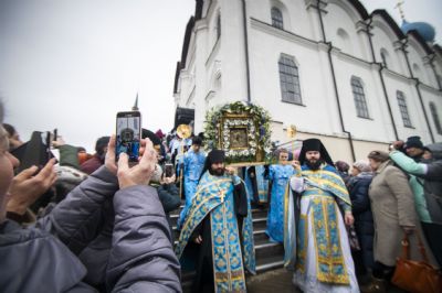 После молебна братия монастыря совершила перед Казанским образом акафистное пение. Все участники крестного хода имели возможность приложиться к чествуемой святыне.