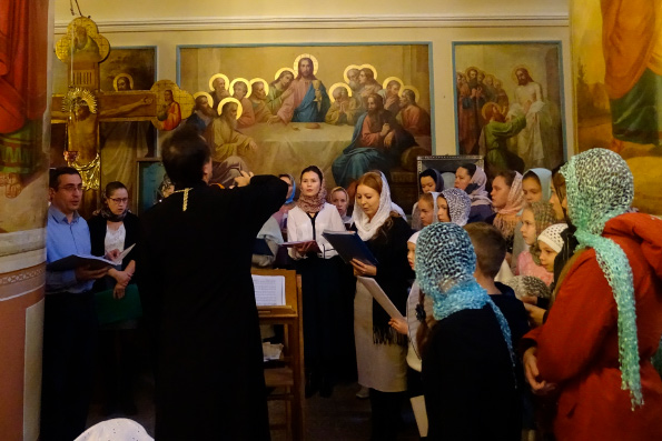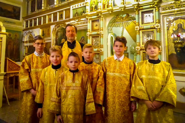 Песнопения исполнялись молодежным хором под управлением настоятеля храма протоиерея Иоанна Барсукова и детским хором под управлением преподавателя музыки Дарьи Ивановской.