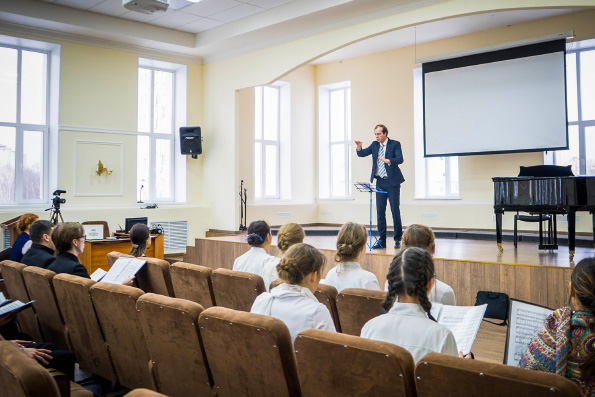 Визит комиссии завершился мастер-классом для участников смешанного хора семинарии, который провел заведующий кафедрой дирижирования факультета церковных искусств СПбДА Антон Максимов.