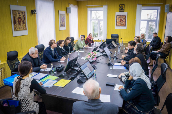 Прибыв в семинарию, члены комиссии познакомились с представителями администрации духовной школы и преподавательским составом Регентского отделения.
