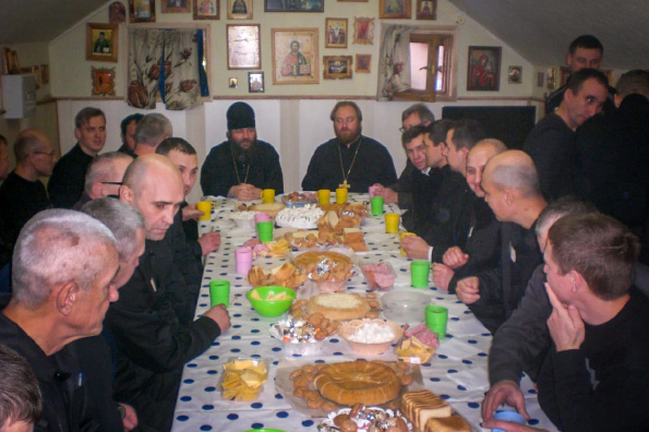 После богослужения состоялось чаепитие, за которым заключенные рассказали гостям о работе, быте и богослужебной жизни в колонии. Они сообщили, что регулярно участвуют в богослужениях в качестве чтецов и певчих, выпускают православную газету «Светоч» и изготавливают утварь для храмов епархии.