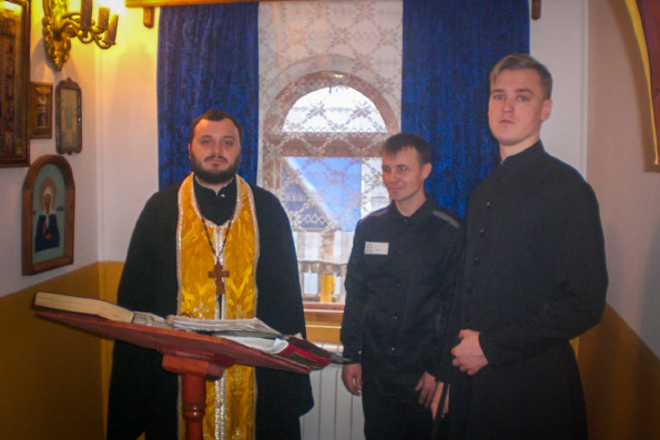 Викарию Казанской епархии сослужили председатель отдела по тюремному служению Казанской епархии иерей Евгений Гаврилкин и настоятель тюремного храма протоиерей Вячеслав Казаков.