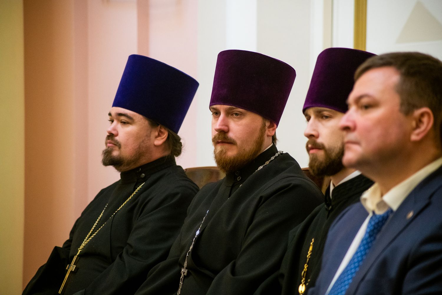 В заседании приняли участие начальник Департамента по взаимодействию с религиозными организациями Управления Президента Российской Федерации по внутренней политике Е.В. Ерёмин, заместитель управляющего делами Московской Патриархии епископ Зеленоградский Савва, председатель Учебного комитета Русской Православной Церкви протоиерей Максим Козлов, заместитель председателя Духовного управления мусульман РТ Ильфар хазрат Хасанов, депутат Государственной Думы ФС РФ О.И. Павлова, председатель Общественной палаты РТ А.А. Фомин, начальник Управления по взаимодействию с религиозными объединениями Департамента Президента РТ по вопросам внутренней политики М.Р. Хисамеев, епископ Альметьевский и Бугульминский Мефодий, епископ Чистопольский и Нижнекамский Игнатий, викарий Казанской епархии епископ Елабужский Иннокентий, эконом Казанско-Вятской епархии Русской Православной старообрядческой Церкви протоиерей Геннадий Четвергов, настоятель Римско-католического прихода Воздвижения Святого Креста города Казани Андрей Старцев и проректор Болгарской исламской академии А.В. Петров.