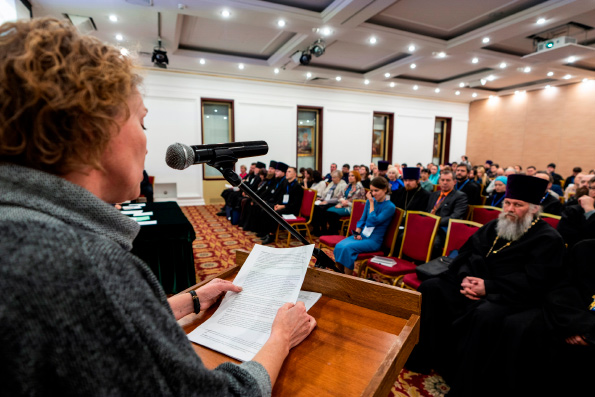После этого были заслушаны доклады представителей отделов религиозного образования и катехизации Альметьевской и Чистопольской епархий — «Реализация образовательных проектов в воскресных школах» и «Опыт привлечения подростков к жизни Церкви на примерах образовательных и воспитательных проектов отдела религиозного образования и катехизации». По окончании выступлений спикеры ответили на многочисленные вопросы из зала, касавшиеся прикладных аспектов организации просветительской работы в приходах.