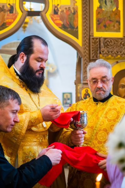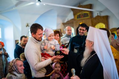 По окончания богослужения владыка Феофан поздравил всех с малой Пасхой, а причастников — с принятием Святых Христовых Таин.