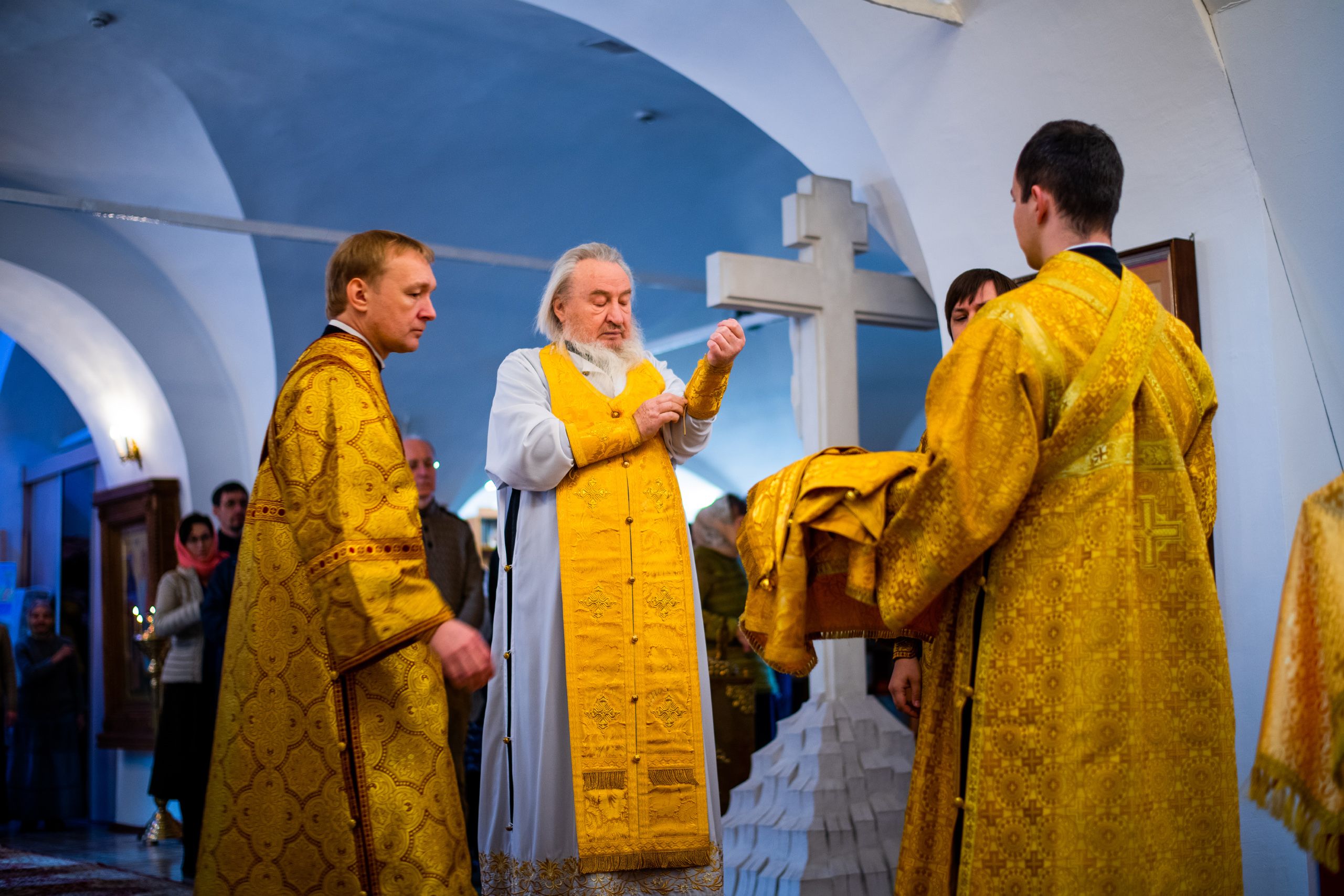 Главе Татарстанской митрополии сослужили настоятель храма протоиерей Димитрий Евграфов, наместник Казанско-Богородицкого мужского монастыря игумен Марк (Виленский), настоятель Введенского Кизического мужского монастыря города Казани игумен Пимен (Ивентьев), клирик Евдокиевской церкви протоиерей Димитрий Богданов.