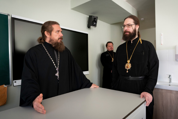 Для высокого гостя была организована экскурсия по семинарии. Владыке Савве показали храм духовной школы, семинарскую библиотеку, учебные аудитории, компьютерный класс, актовый и спортивный залы, студенческое общежитие и трапезную.